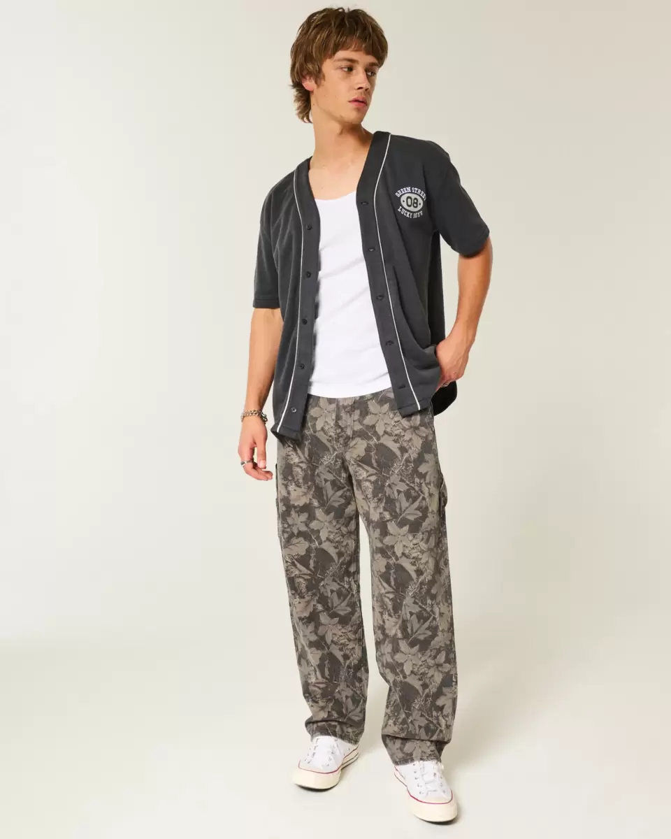Super comfortable and skater-inspired, these baggy jeans feature an all-over camo pattern, left painter loop and extra pockets. Imported.