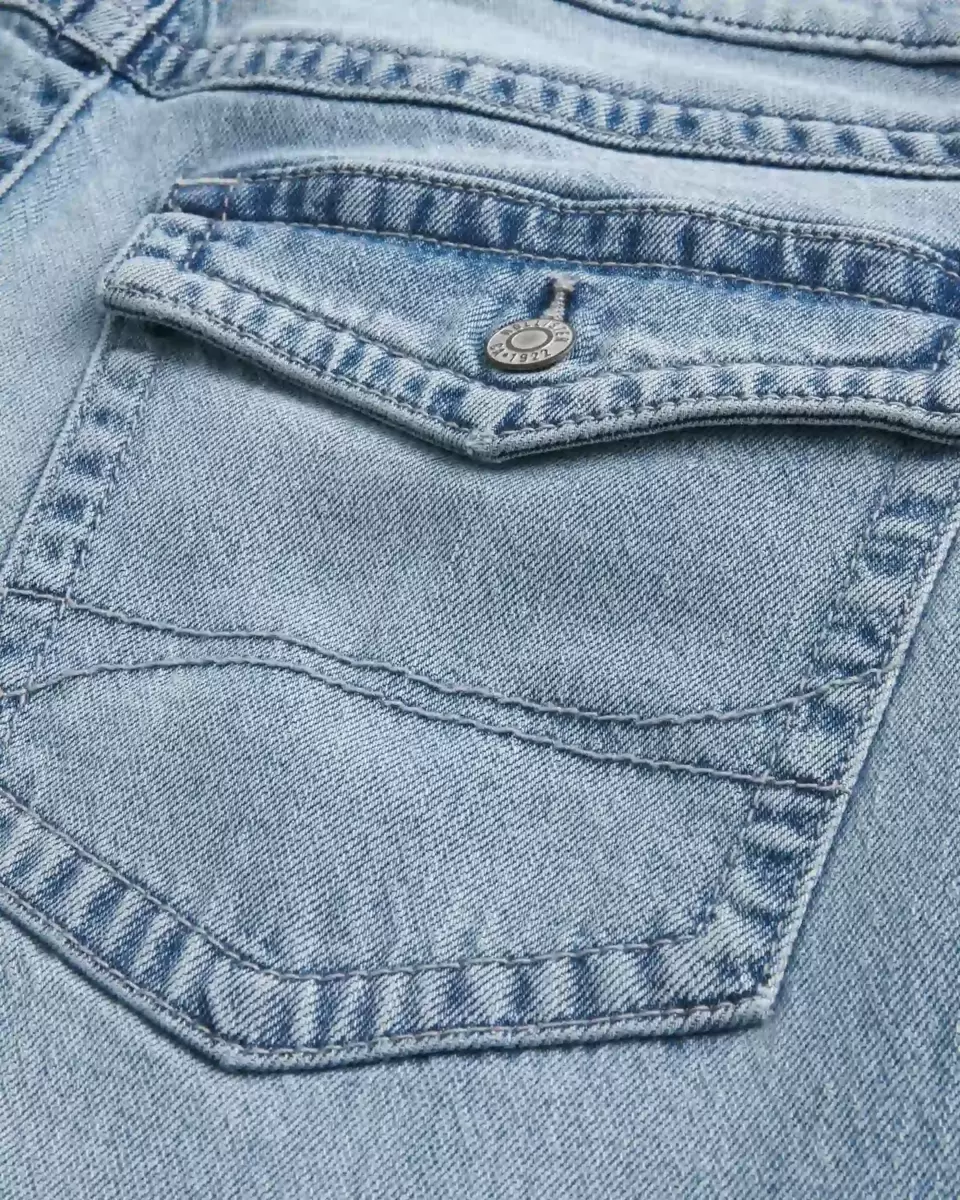 Comfortable denim jeans in a light wash, designed with a baggy leg and bootcut opening. Fading, back flap pocket. Imported.