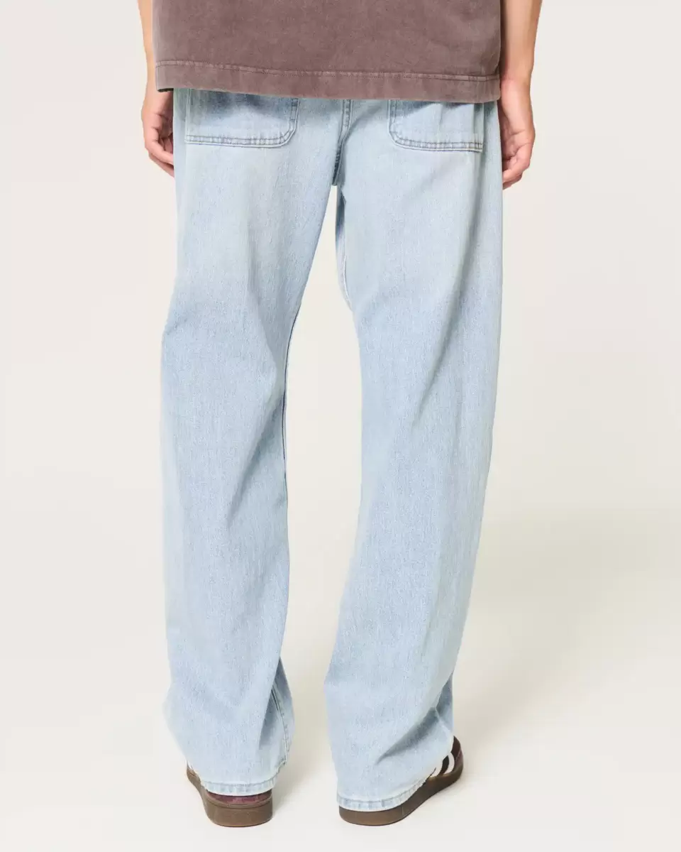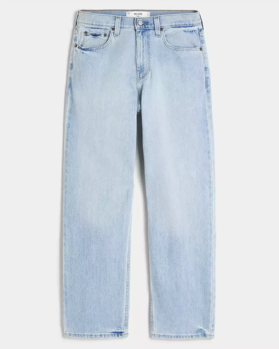 Classic, comfortable jeans designed with a baggy leg. Light wash denim. Imported.