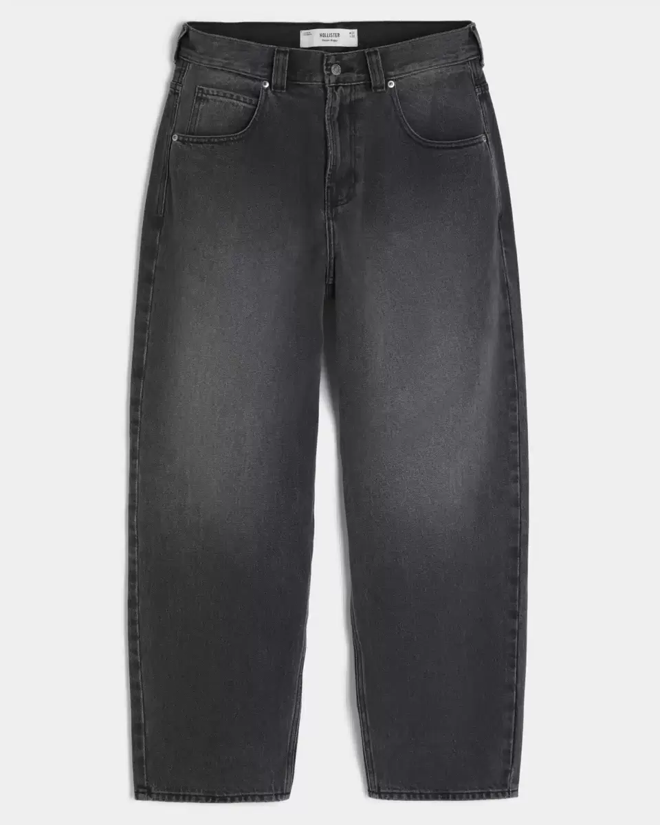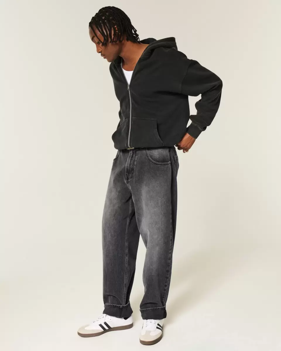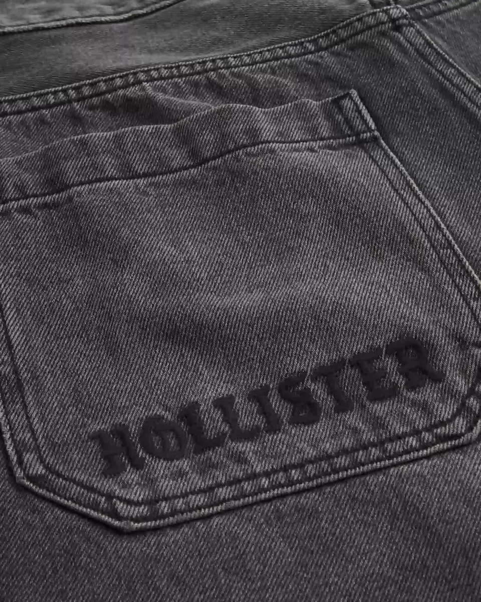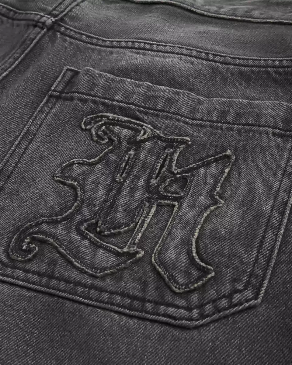 Comfortable denim skater jeans in washed black, designed with a baggy leg. Logo graphic embroidery and applique at back pocket, fading. Imported.