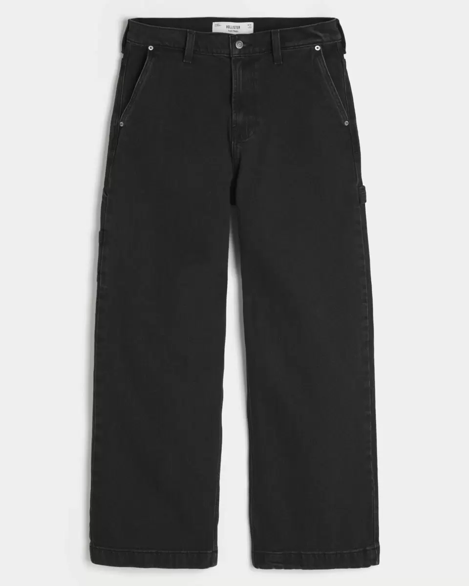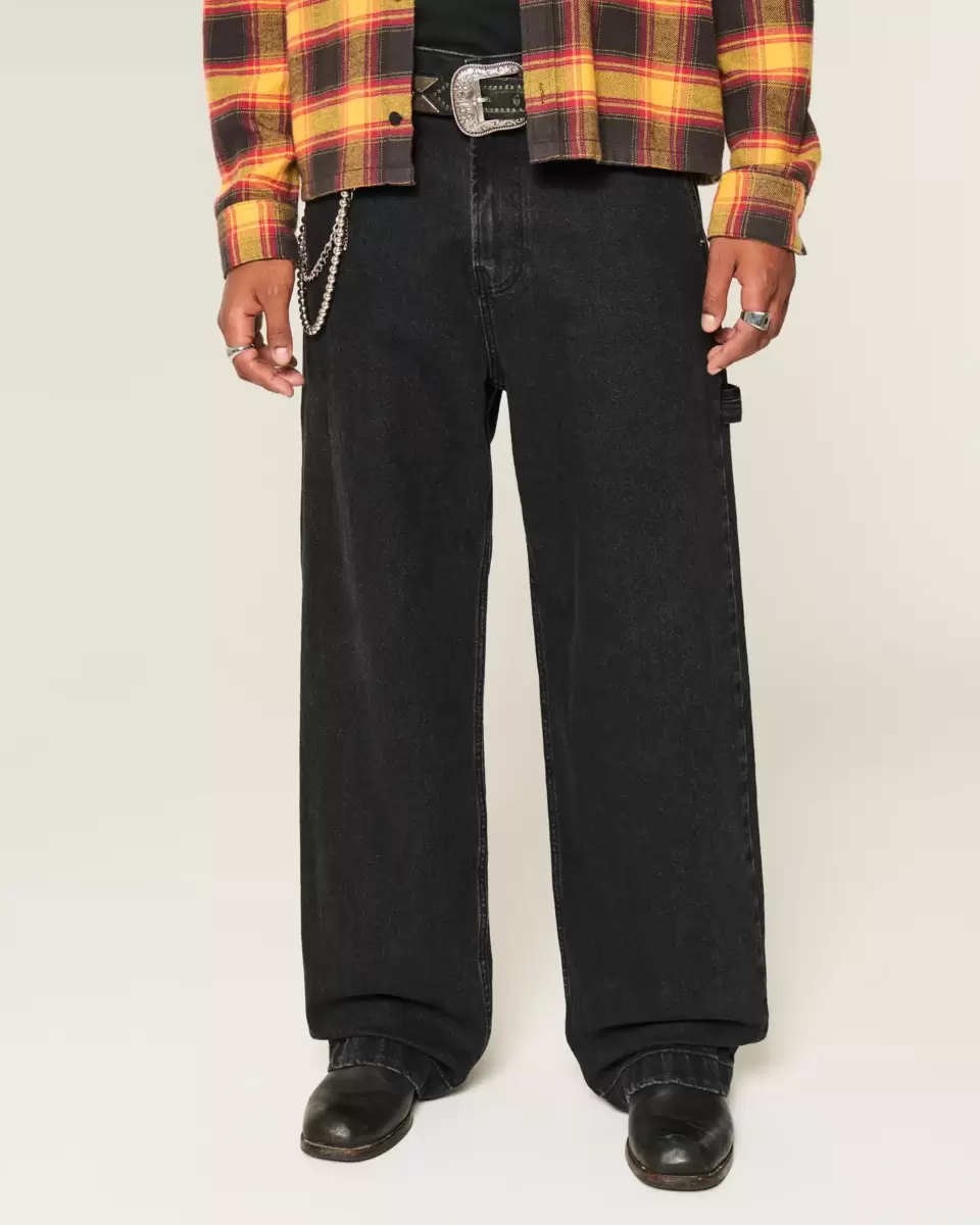 Comfortable denim jeans in washed black, designed with a super baggy leg, left painter loop and extra pockets. Imported.