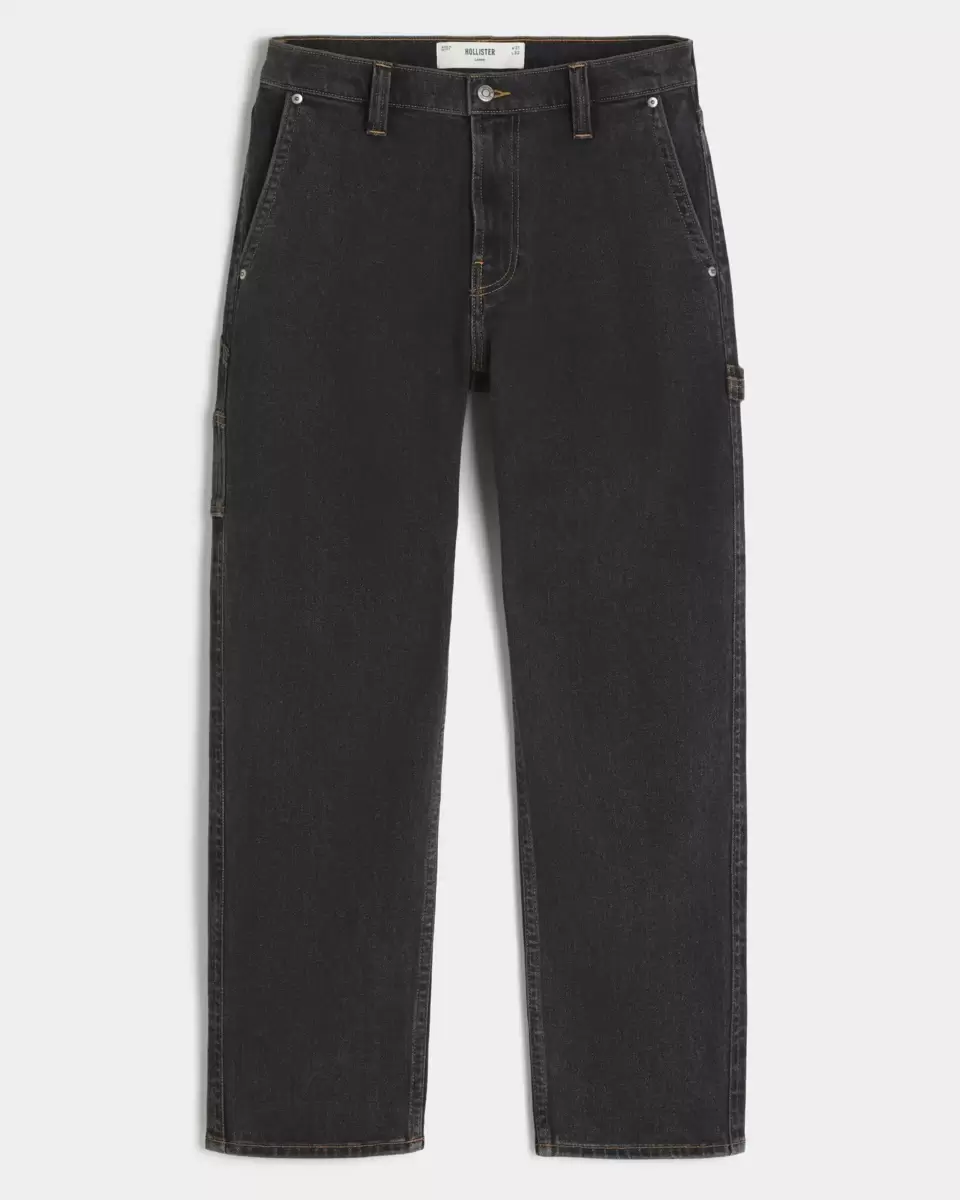 Comfortable denim jeans in washed black, designed with a loose leg, left painter loop detail and extra pockets. Imported.