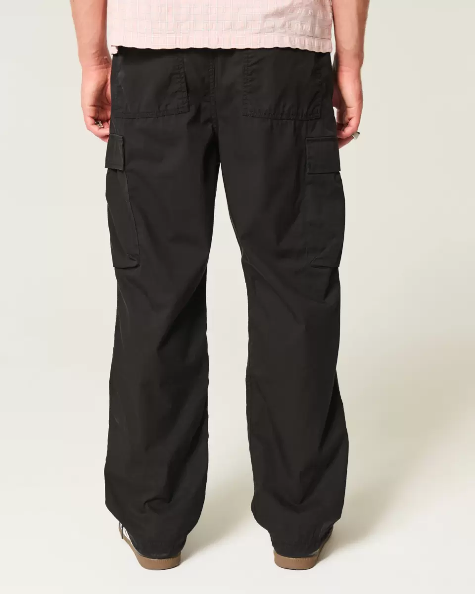 Comfortable twill pants designed with a baggy leg, side cargo pockets and a pull-on drawstring waist. Imported.