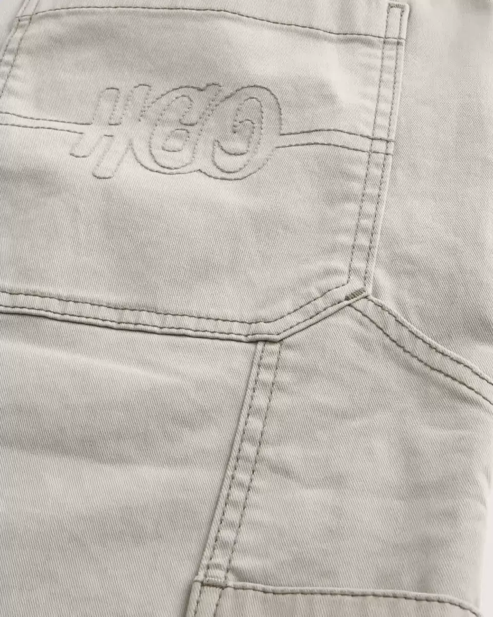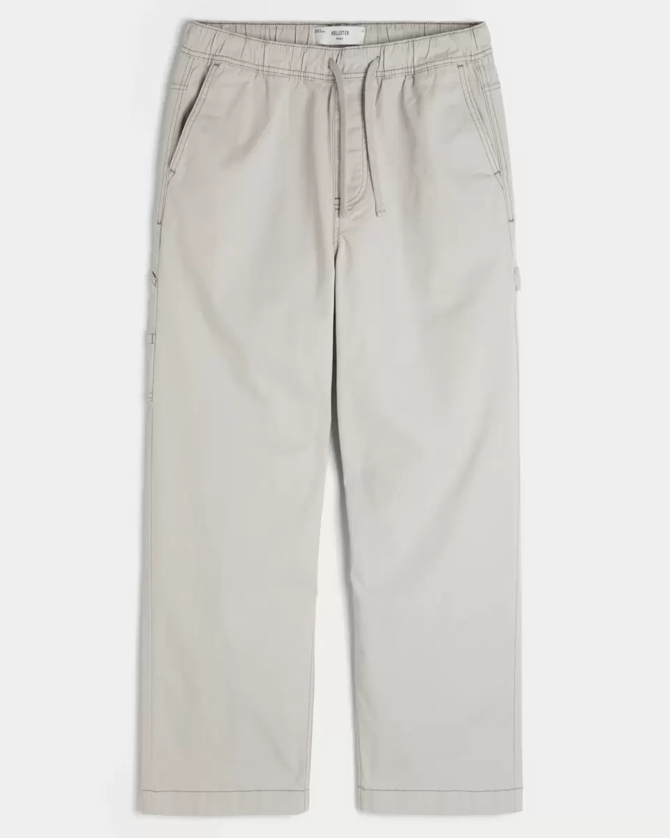 Comfortable twill painter pants designed with a baggy leg. Drawstring waist, extra pockets, embroidered logo detail at back pocket. Imported.