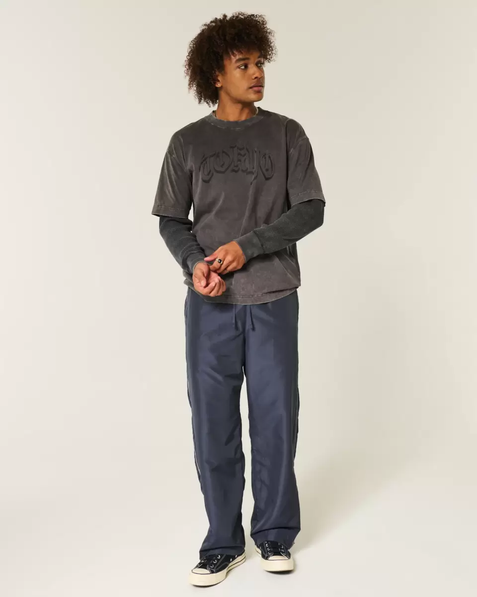Comfortable track pants designed with a baggy leg and drawstring waist. Pockets. Imported.