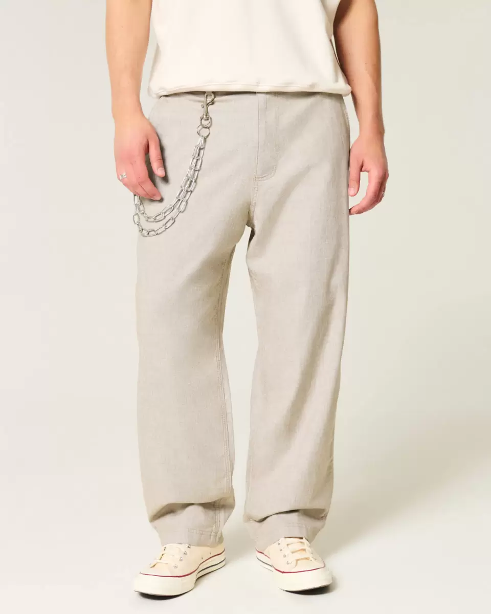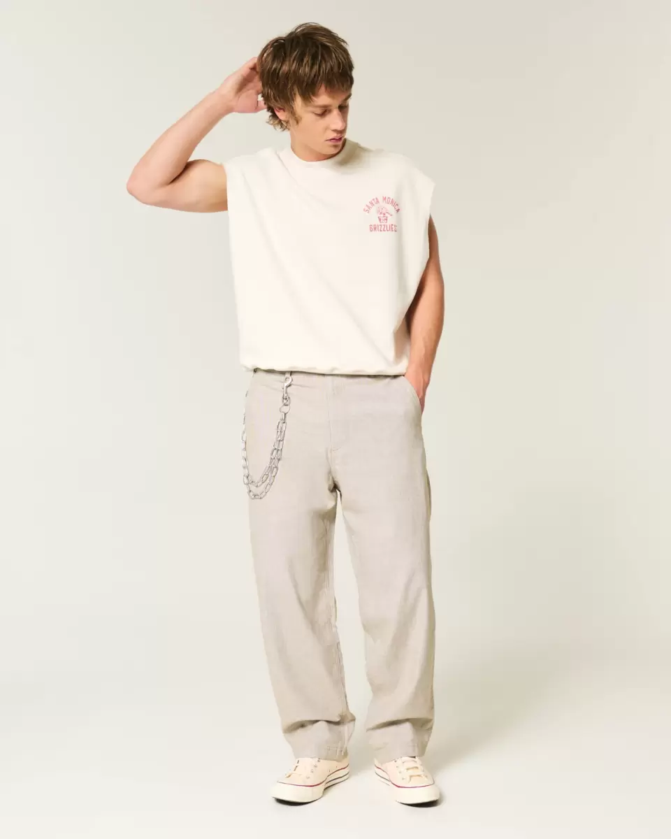 Super comfortable pants in a soft linen blend, designed with a flex waistband and baggy leg. Pockets. Imported.
