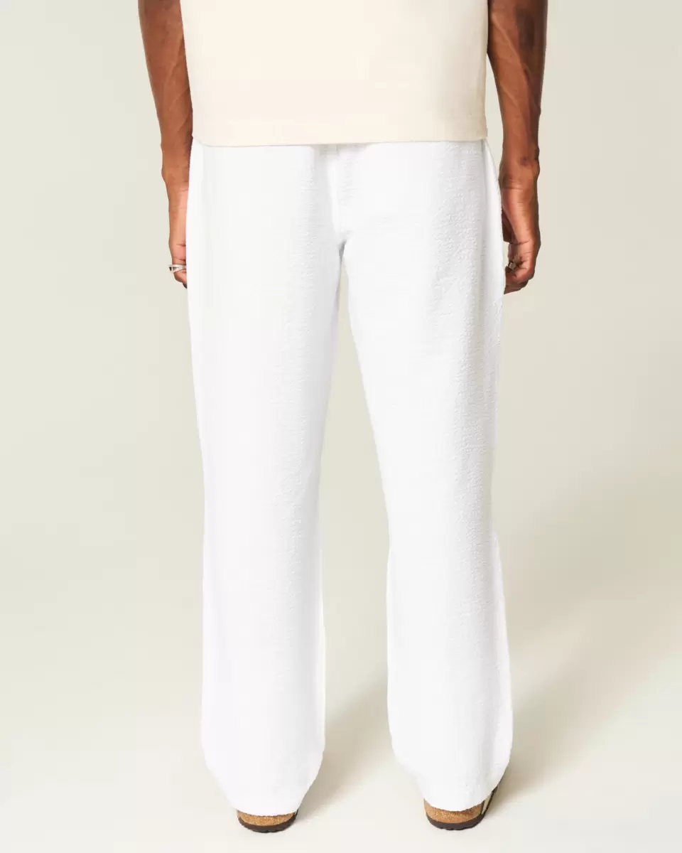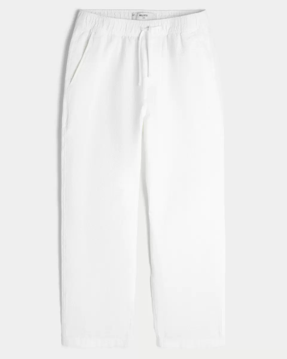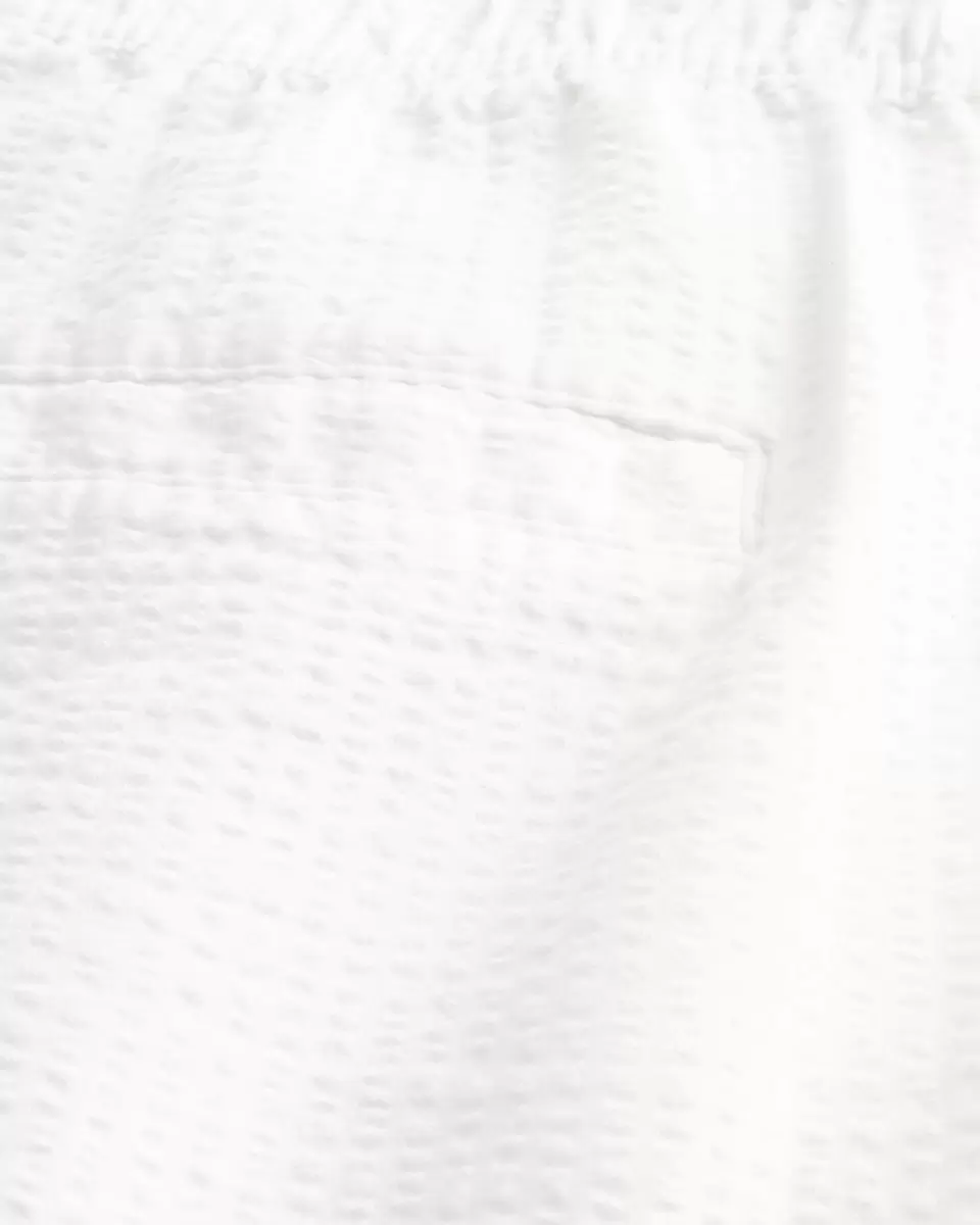 Comfortable pants in soft seersucker fabric, designed with a loose leg and pull-on drawstring waist. Pockets. Imported.