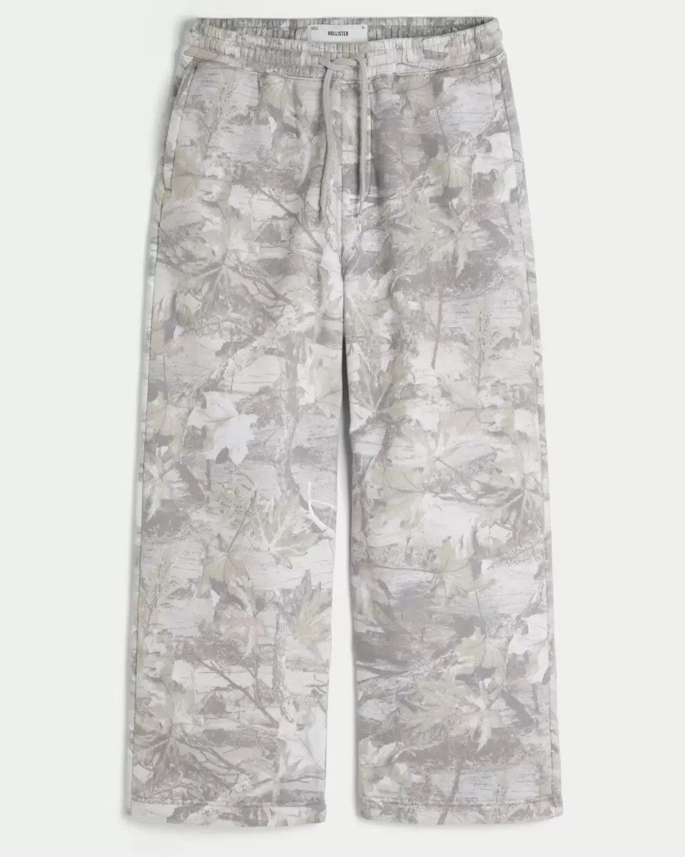Comfortable fleece sweatpants with a super baggy leg and drawstring waist. Pockets, right zipper pocket, all-over camo pattern, embroidered logo detail. Imported.