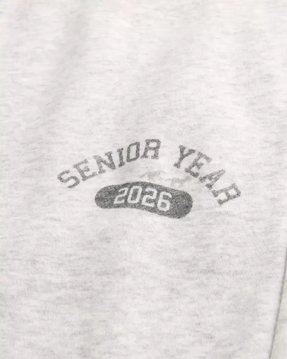 Super soft fleece sweatpants featuring Senior Year 2026 print graphics. Drawstring waist, pockets, right zipper pocket, super baggy leg. Imported.