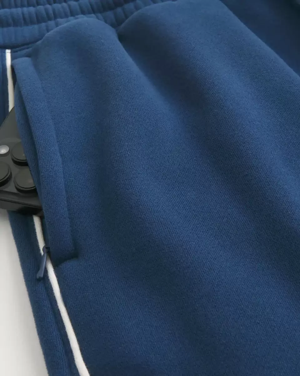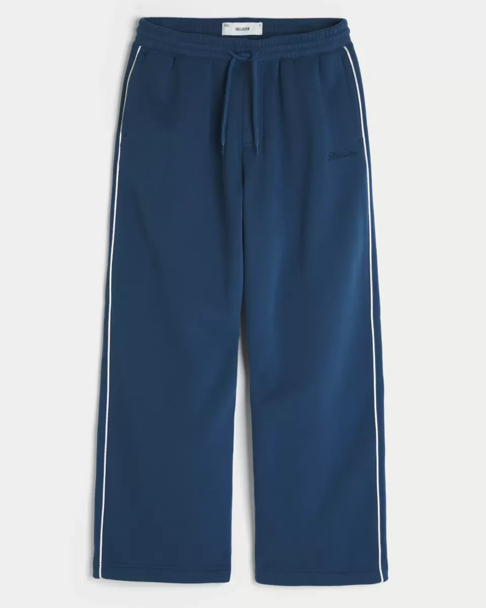 Soft fleece sweatpants designed with a super baggy leg and drawstring waist. Piping along the sides, embroidered logo detail, pockets, right zipper pocket. Imported.
