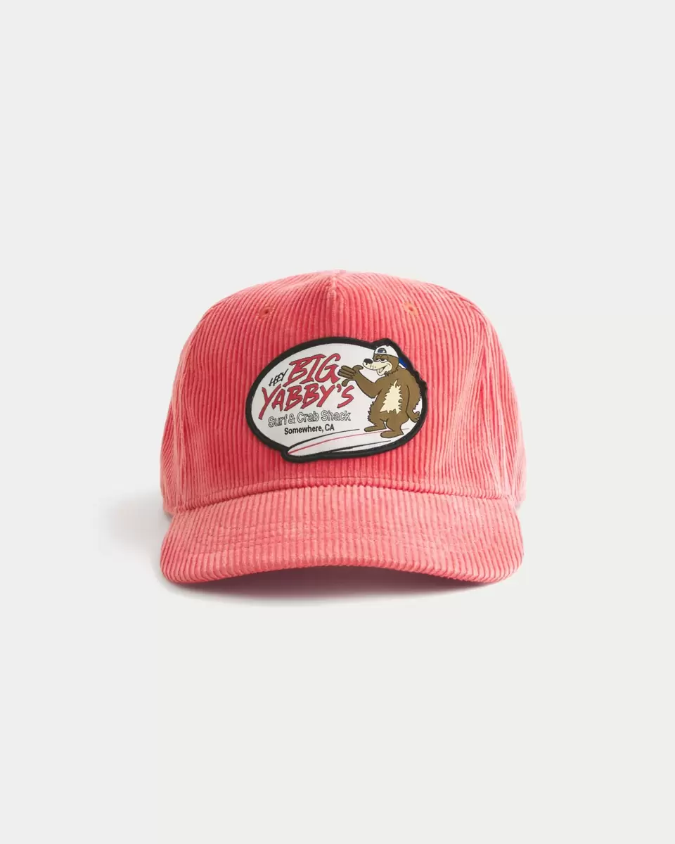 A surf-inspired baseball hat in corduroy featuring a Big Yabby’s Surf & Crab Shack graphic patch. Adjustable. Imported.