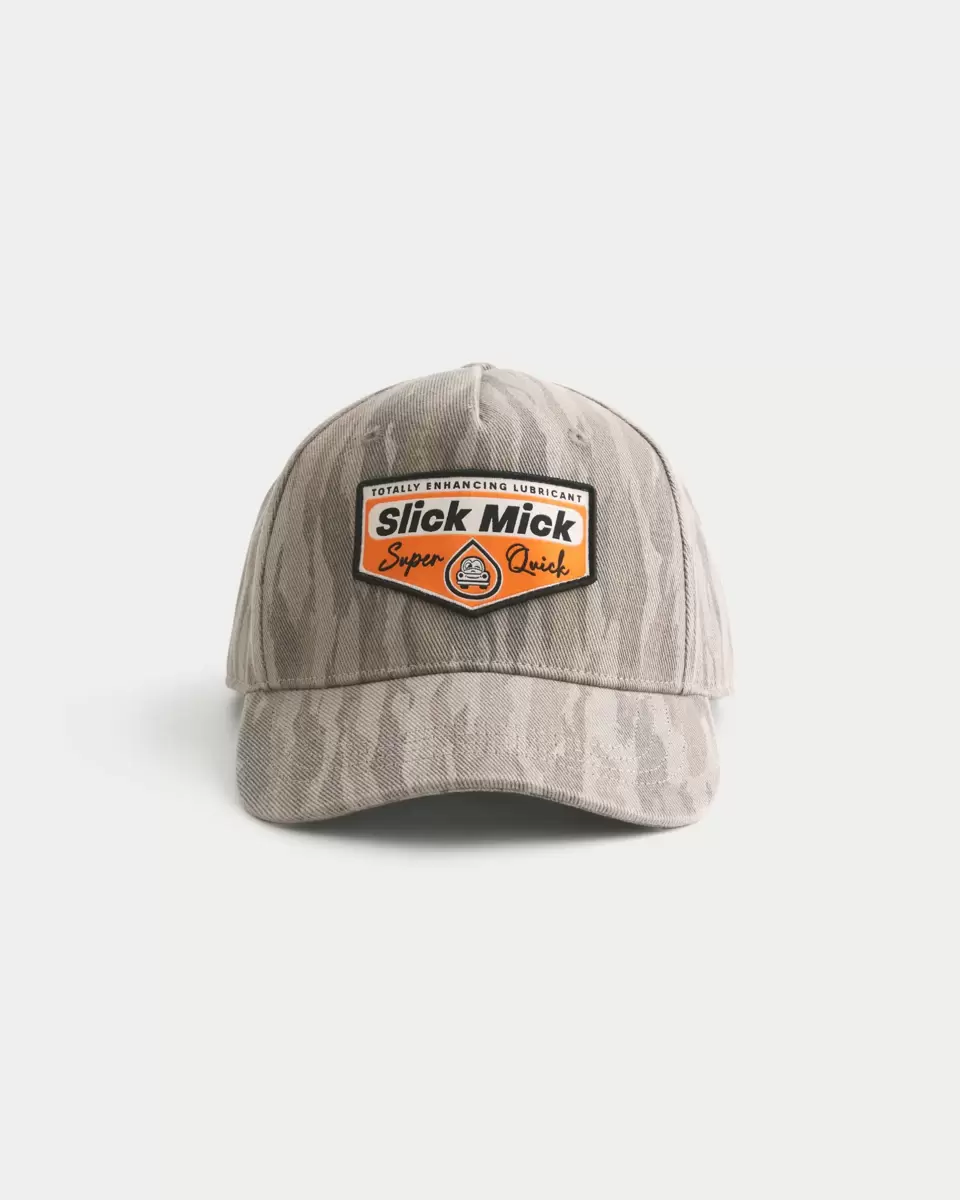 A classic hat featuring a Slick Mick graphic patch and all-over camo pattern. Adjustable.