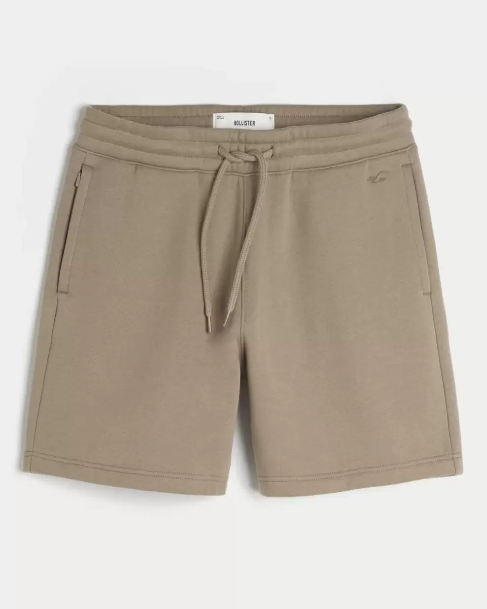 Super soft fleece shorts designed with an above-the-knee length and drawstring waist. Pockets, right zipper pocket, embroidered logo icon. Imported.