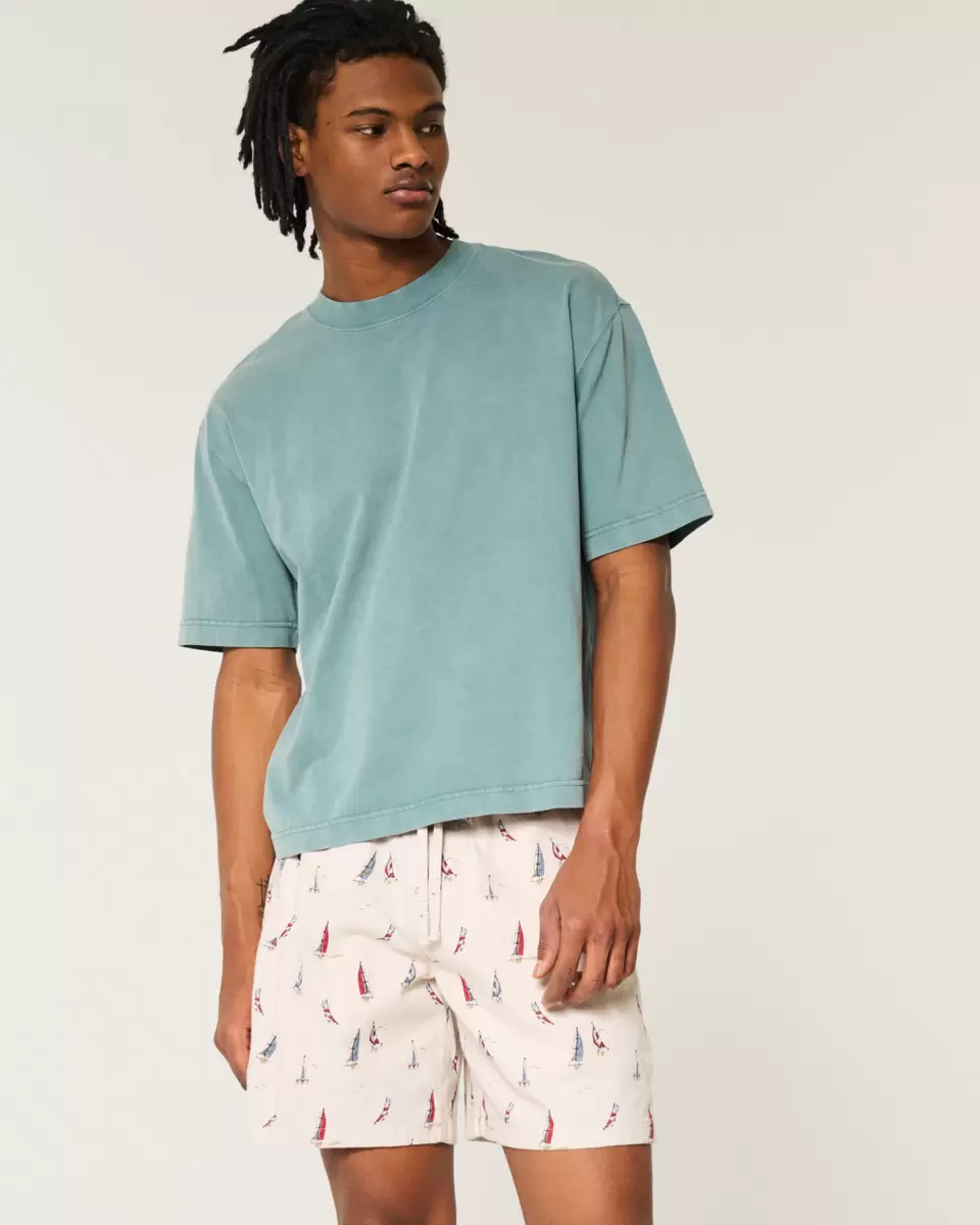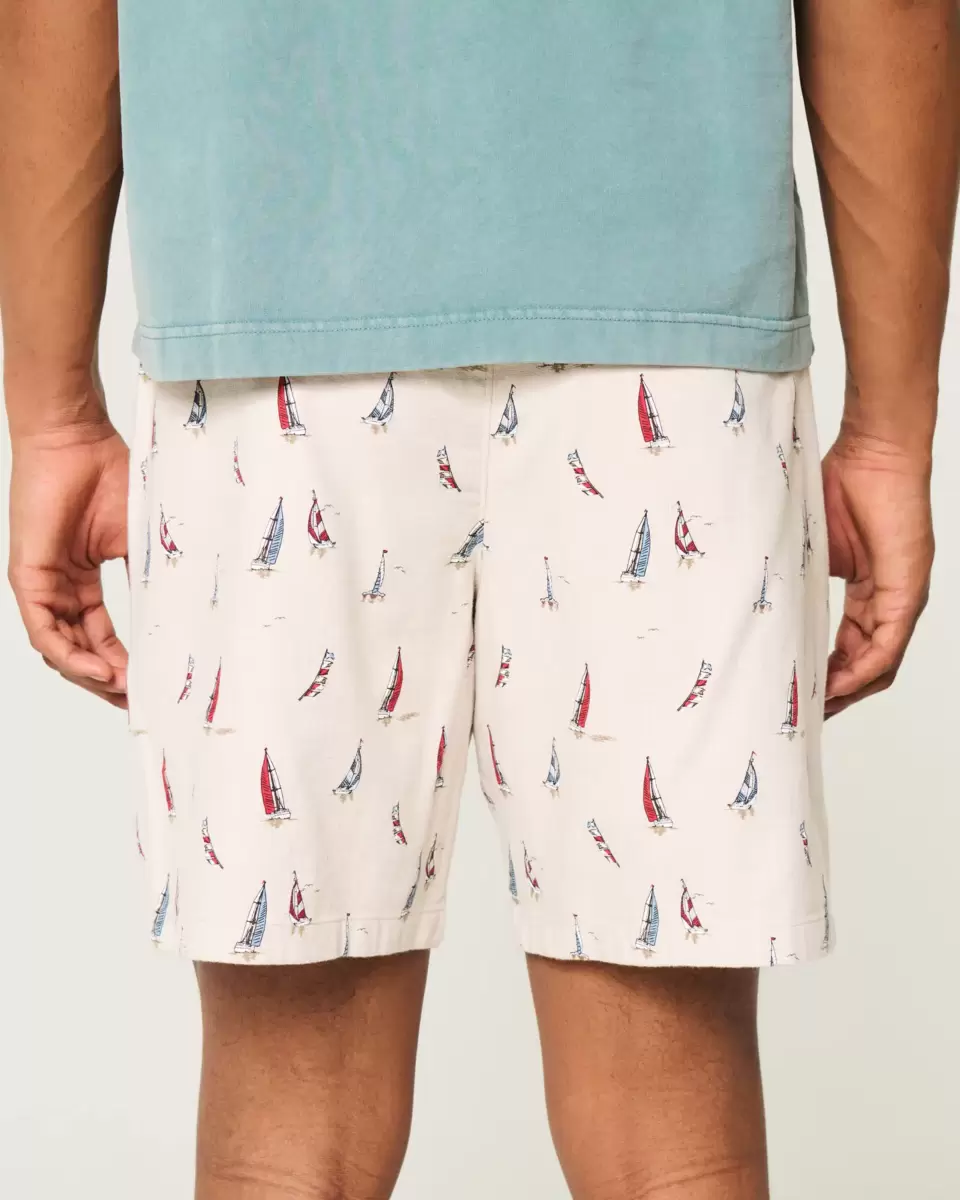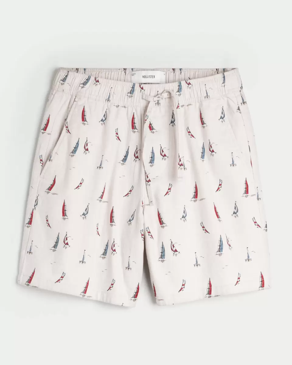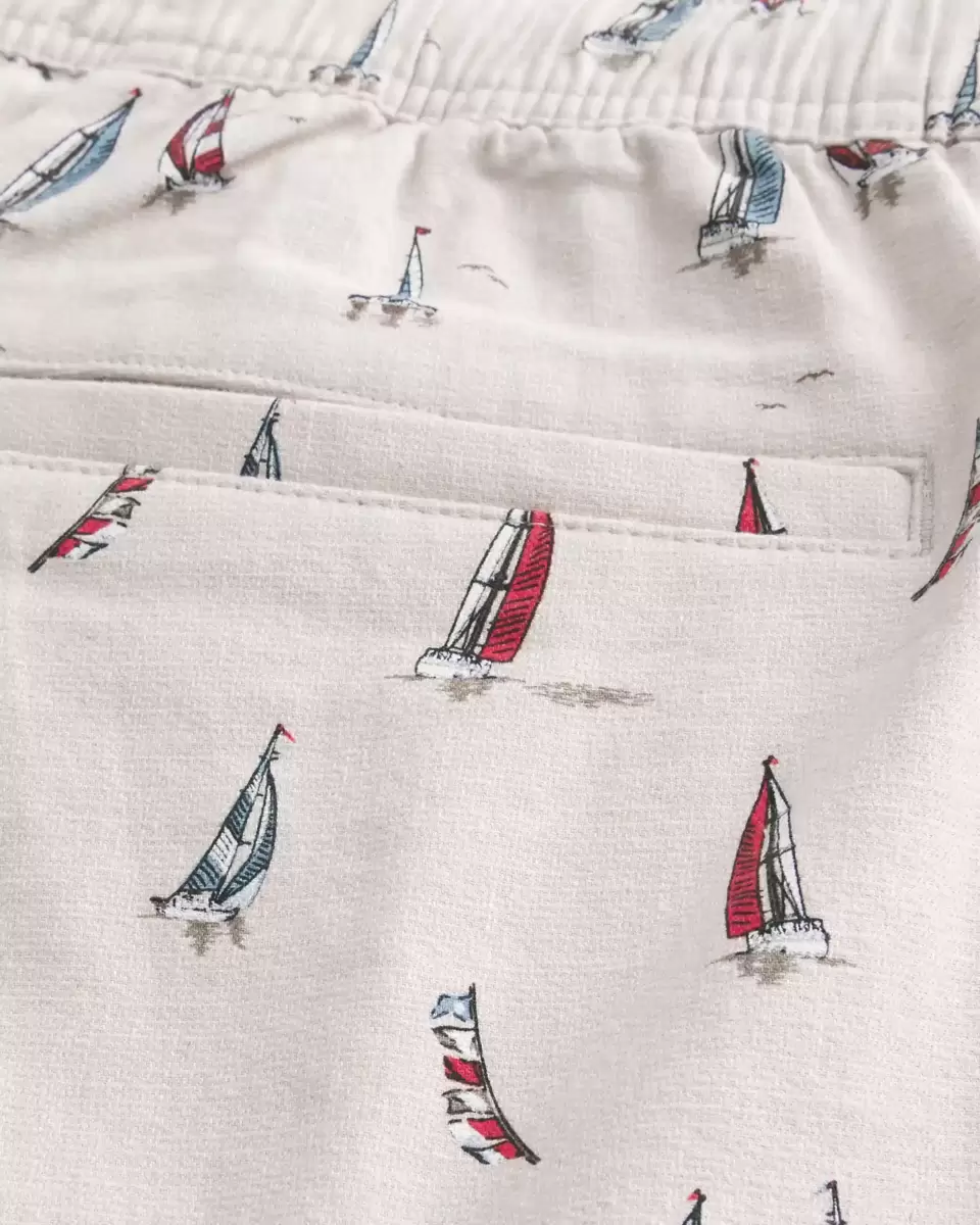 Ultra-comfortable shorts with a drawstring waist and all-over sailboat pattern. Pockets, hits above the knee. Imported.