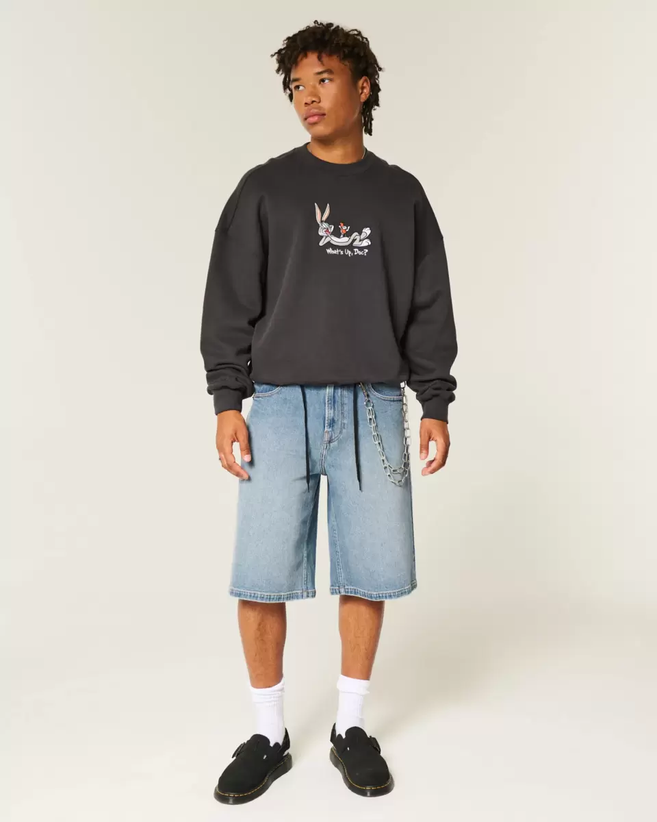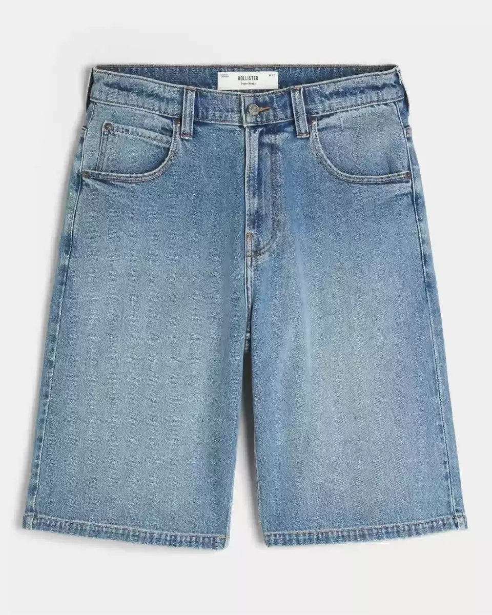 Comfortable denim shorts in a medium wash, designed with a super baggy leg. Fading. Imported.