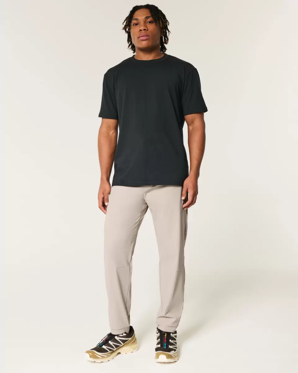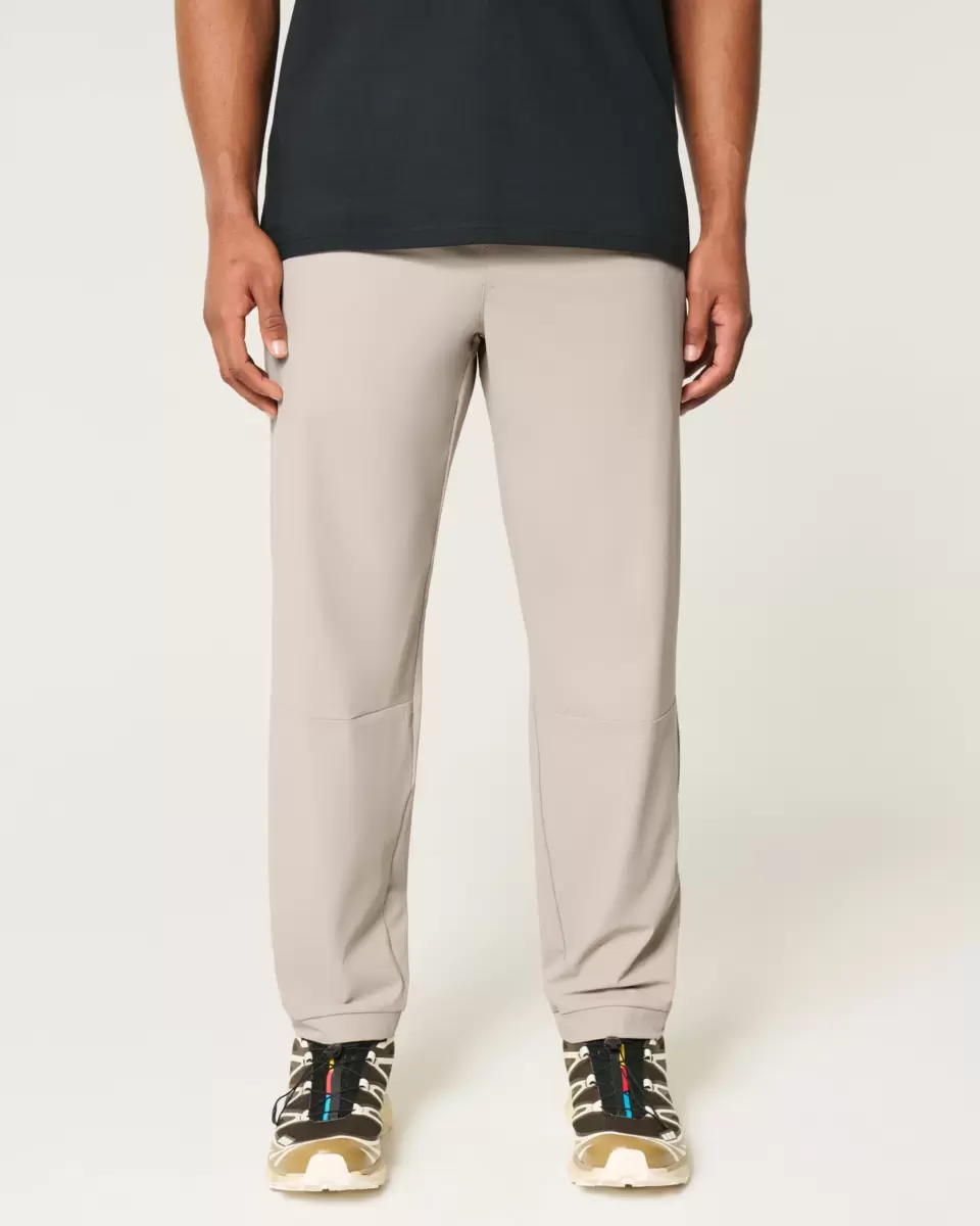 Ultra-comfortable pants with stretch, designed with relaxed leg that tapers to a narrower cuff. Drawstring waist, pockets, right zipper pocket. Imported.