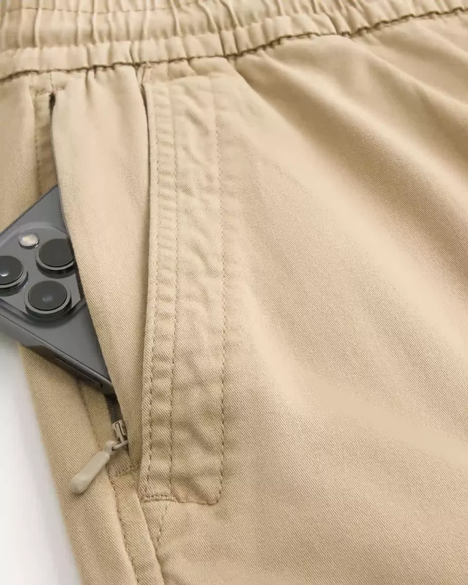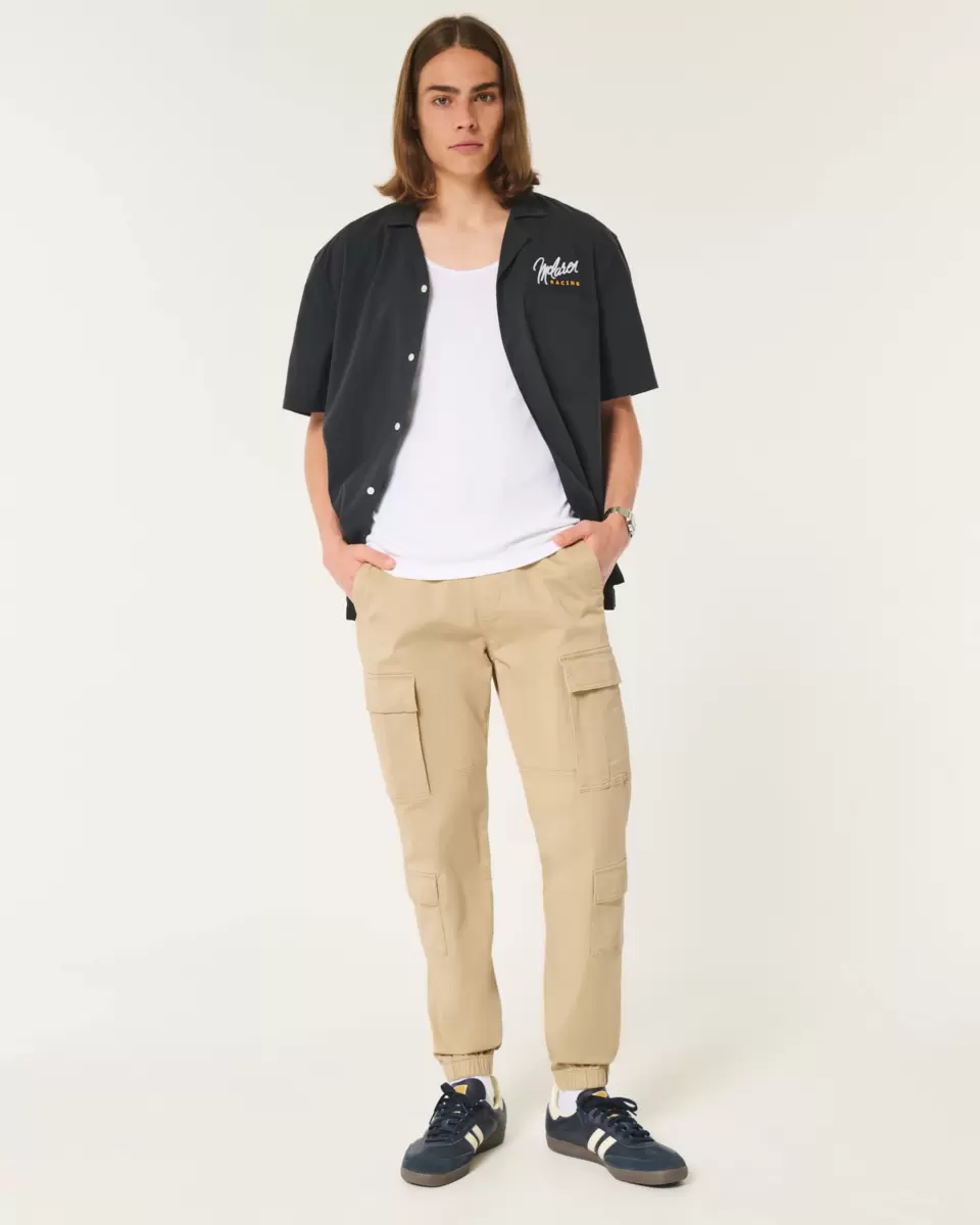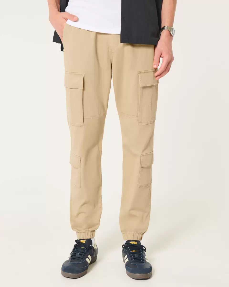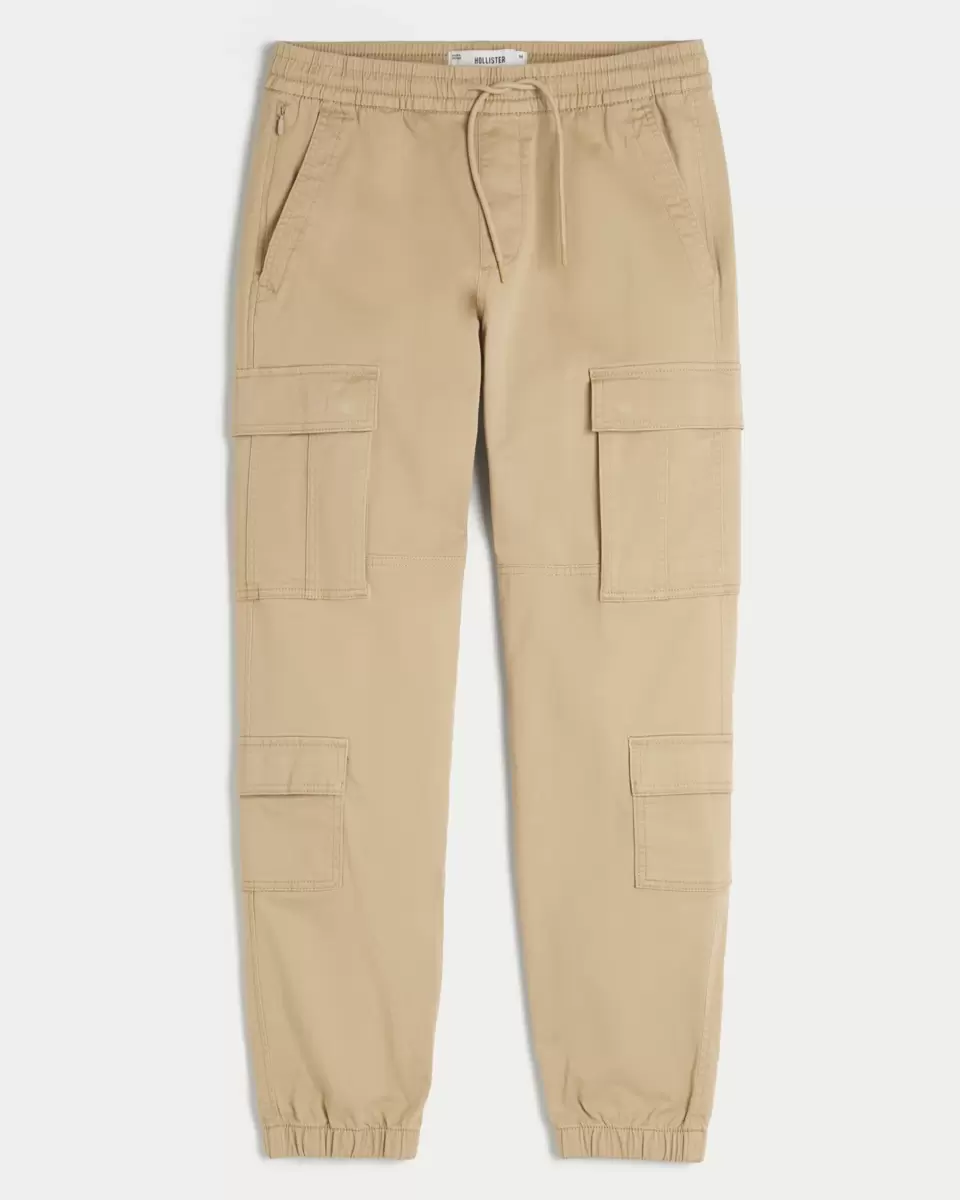 Cool and comfortable twill joggers featuring double side cargo pockets and a drawstring waist. Right zipper pocket, banded hems, relaxed leg. Imported.
