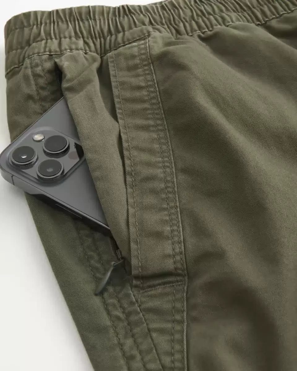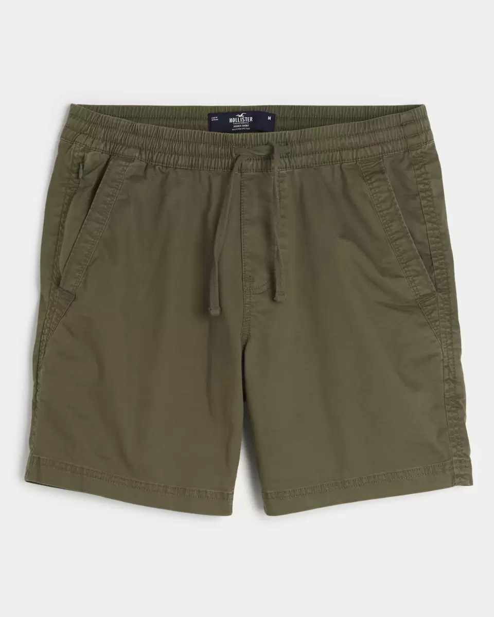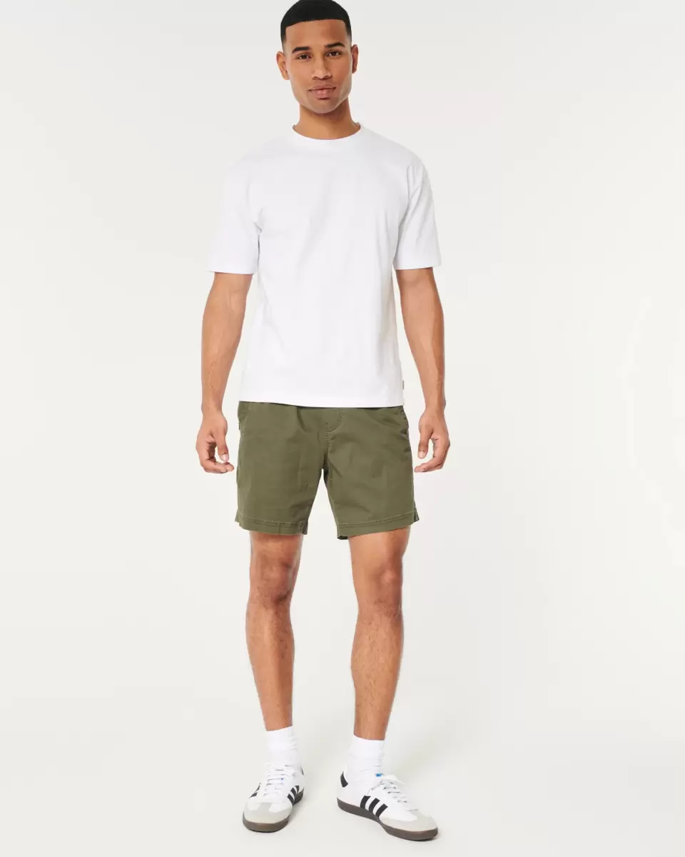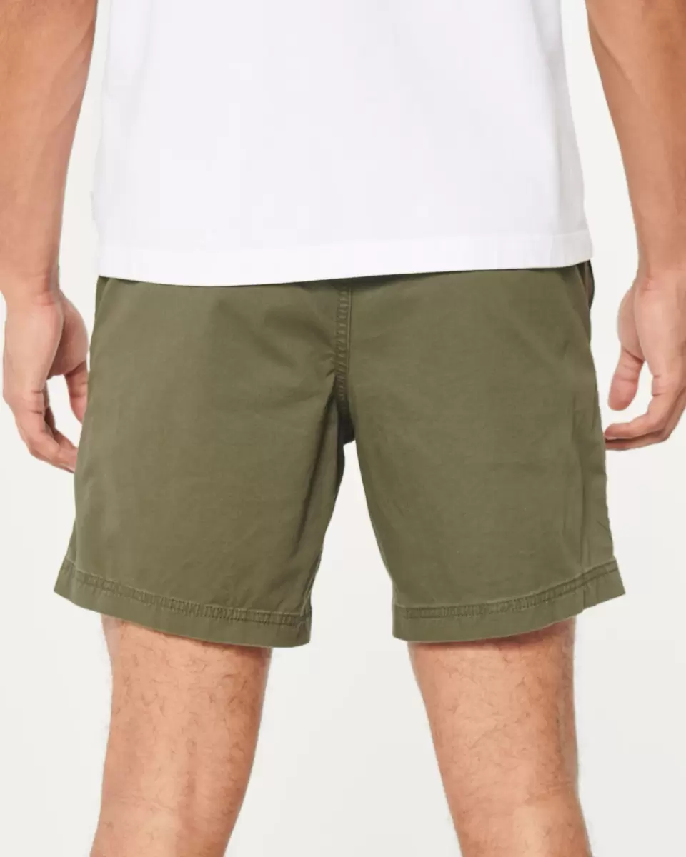 Comfortable pull-on shorts made with Hollister Epic Flex twill, featuring front pockets and a soft drawstring waist. Hidden phone pocket. Hits above the knee. 7″ inseam. Imported.