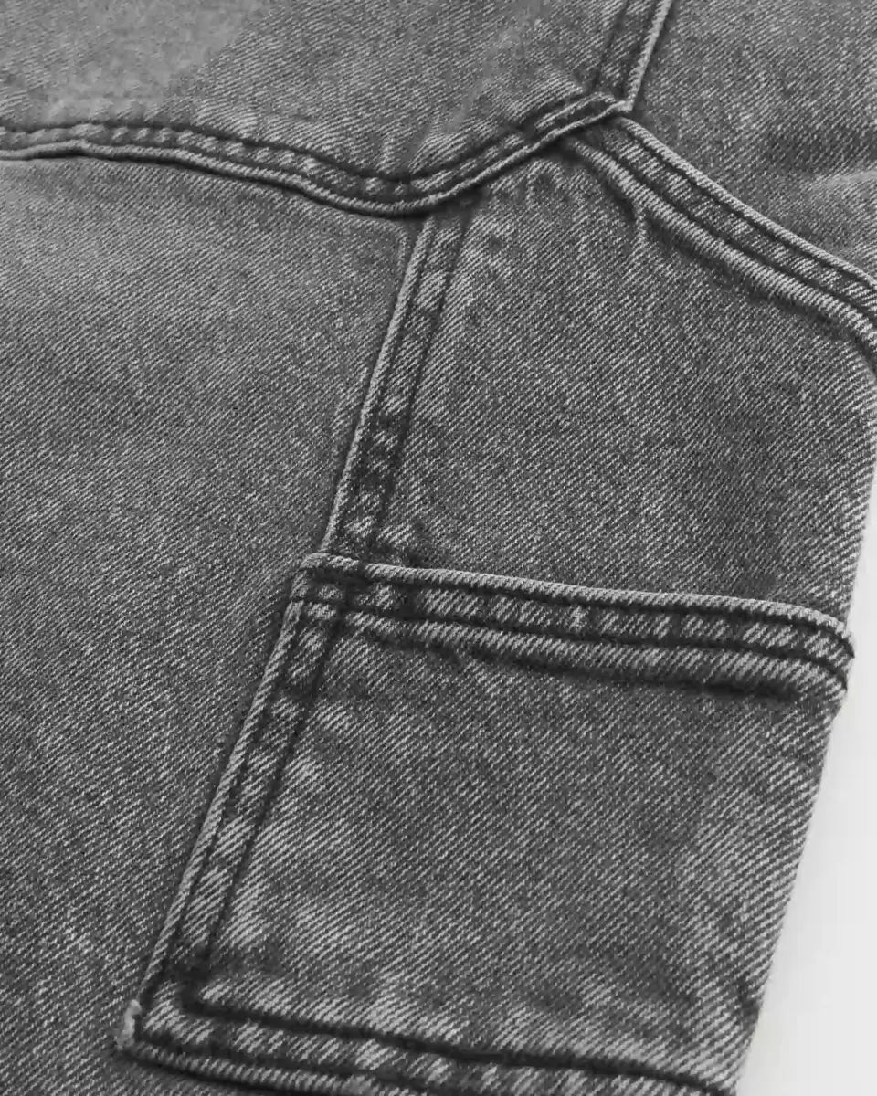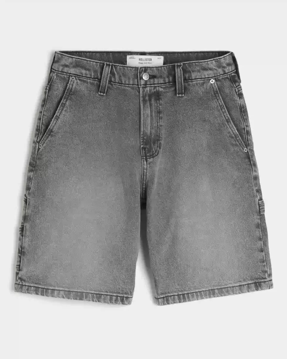 Comfortable denim painter shorts designed with a baggy leg, left loop detail and extra pockets. Fading. Imported.