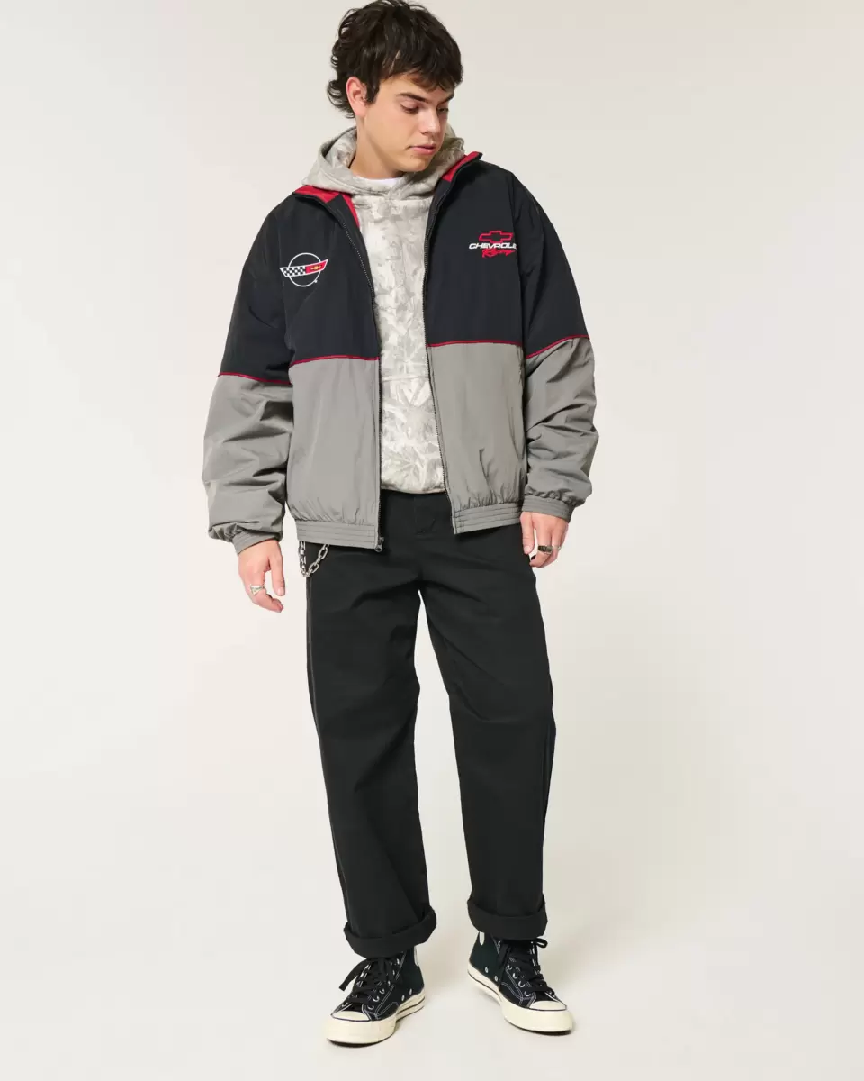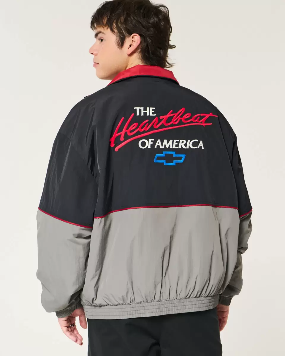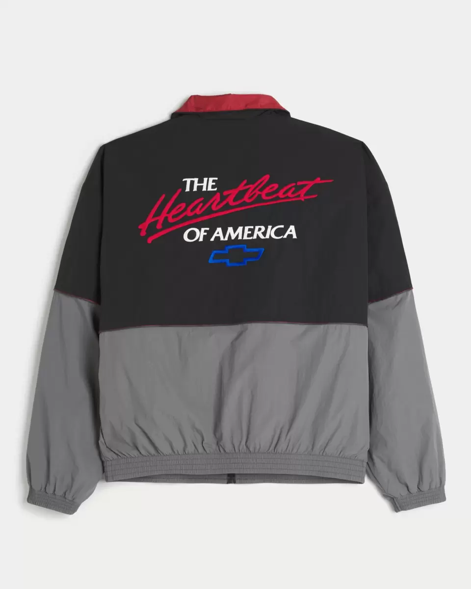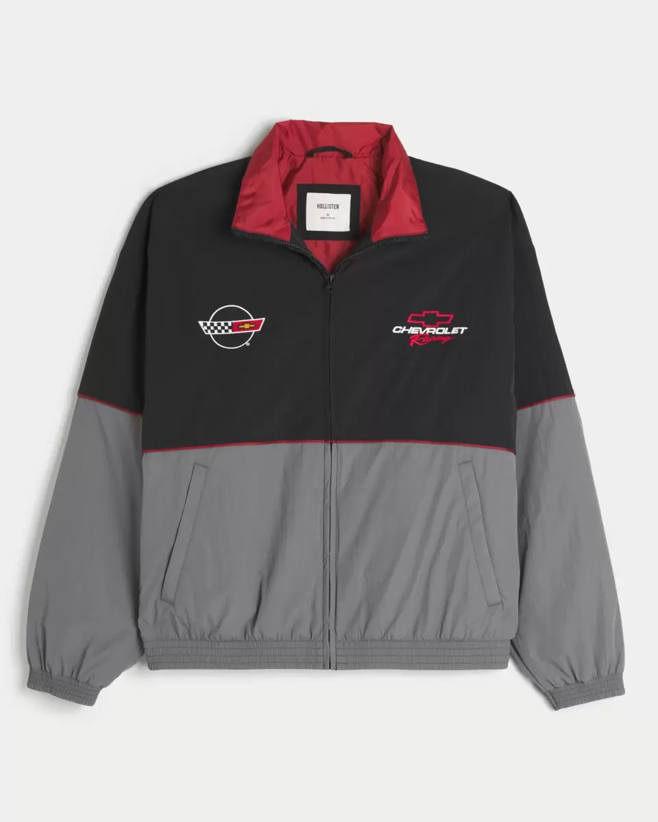 This classic track jacket features official licensed Chevrolet Racing graphic embroidery at the front and back. Full zip-up closure, front pockets, banded hems. Imported.