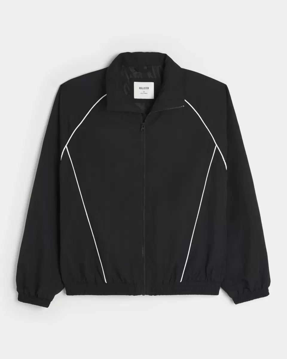 An ultra-comfortable windbreaker jacket with a full zip-up closure piping details. Banded hems. Imported.
