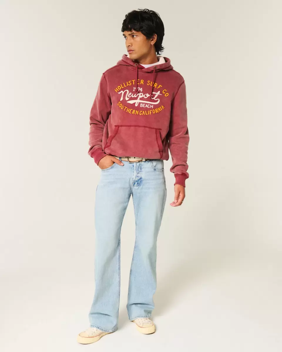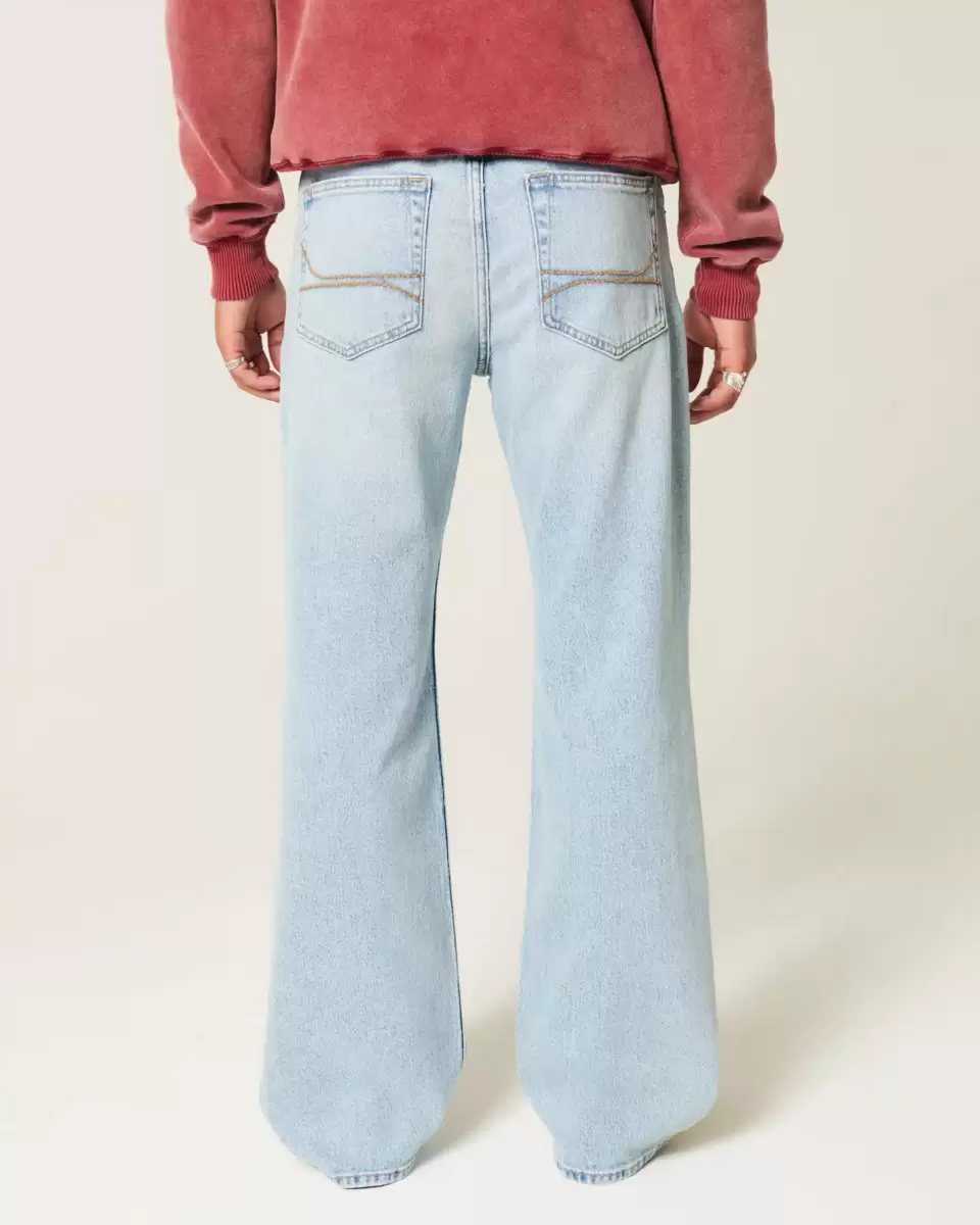 Comfortable denim jeans designed with a relaxed leg and boot opening. Fading and whiskering. Button fly. Trend drop. Imported.