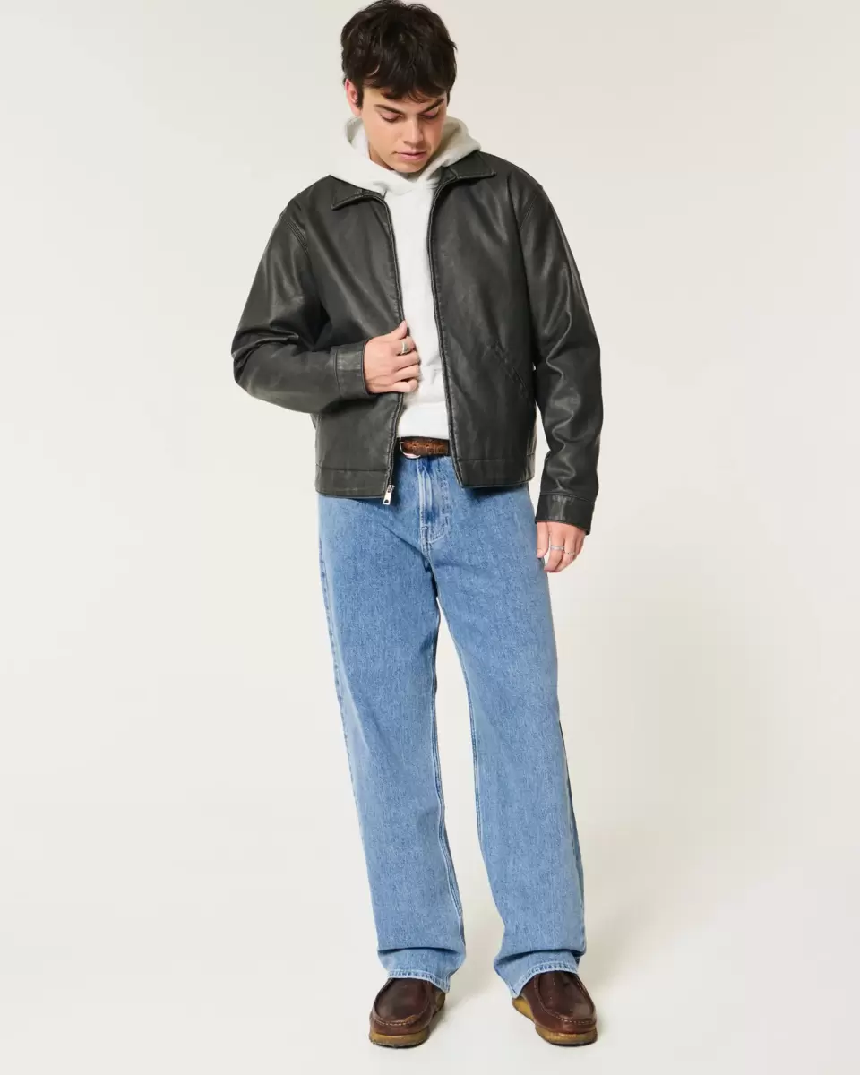 Ultra-comfortable denim jeans designed with a baggy leg and iconic 5-pocket styling. Light wash.