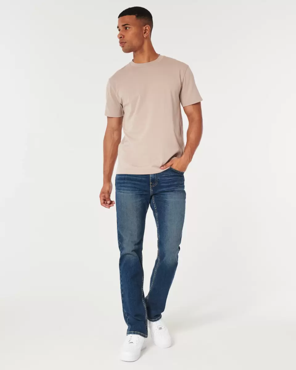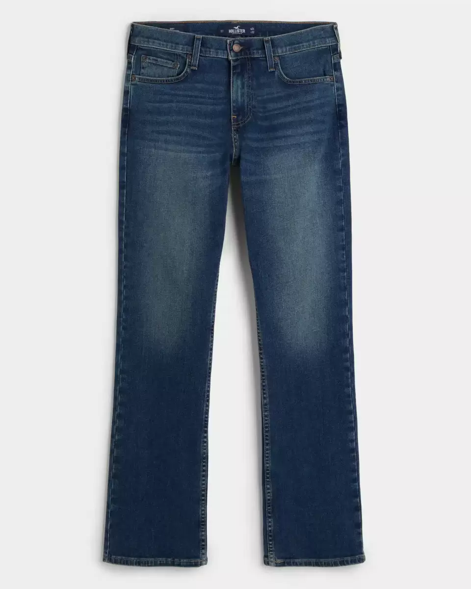 Designed with a relaxed fit through the hip and thigh with a 17.25” leg opening, featuring medium wash denim made with Hollister Epic Flex stretch, fading and whiskering, five-pocket styling and iconic back pocket embroidery Imported.