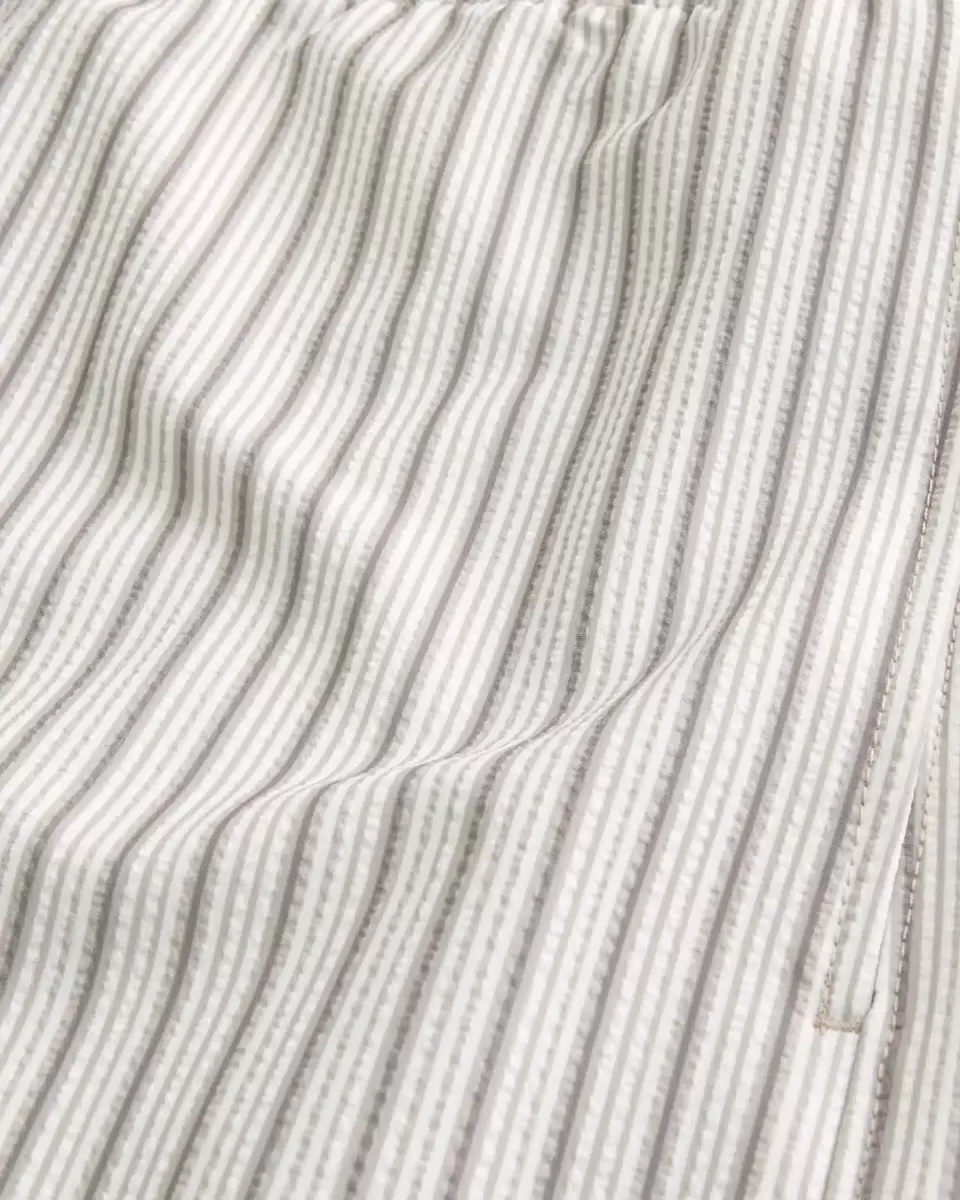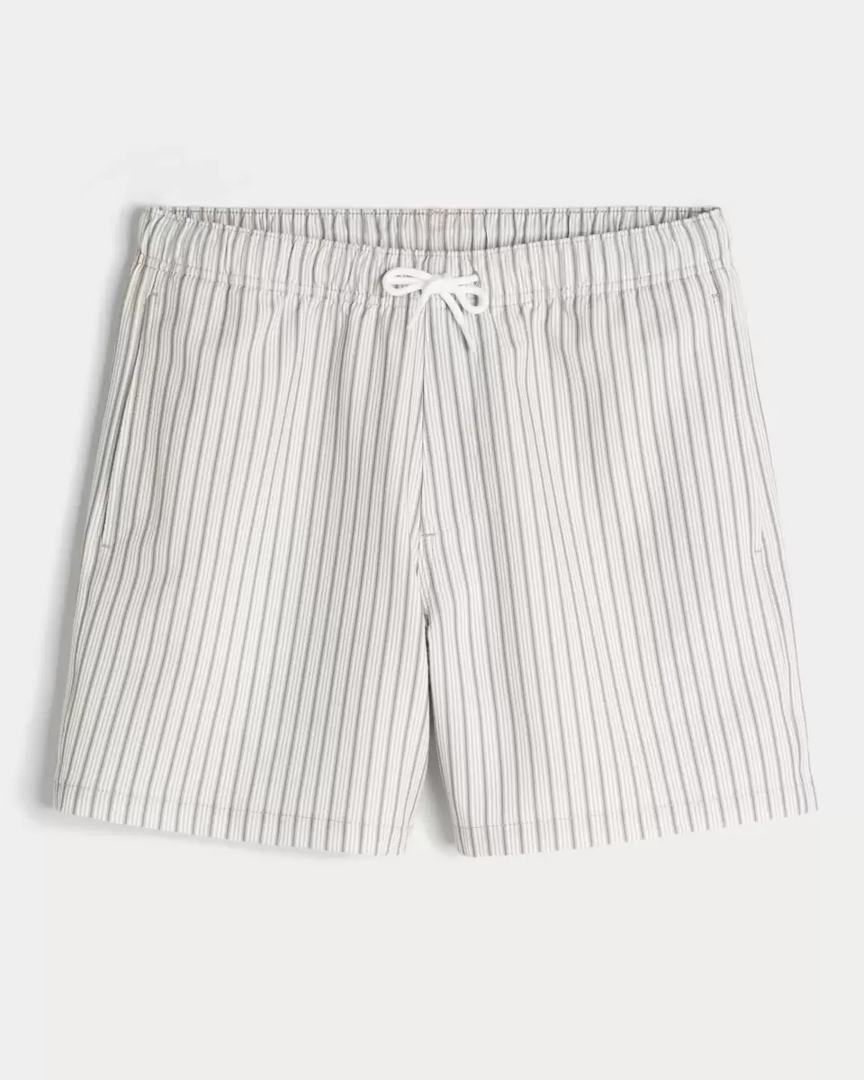 Shorter-length swim trunks that hit mid-thigh. Featuring comfortable 4-way stretch seersucker swim fabric and a 6″ inseam. Front pockets, mesh lining. Imported.