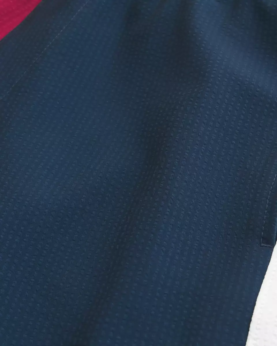 Shorter-length swim trunks that hit mid-thigh. Featuring comfortable 4-way stretch seersucker swim fabric and a 6″ inseam. Front pockets, mesh lining. Imported.