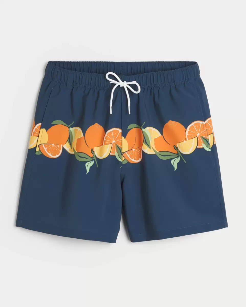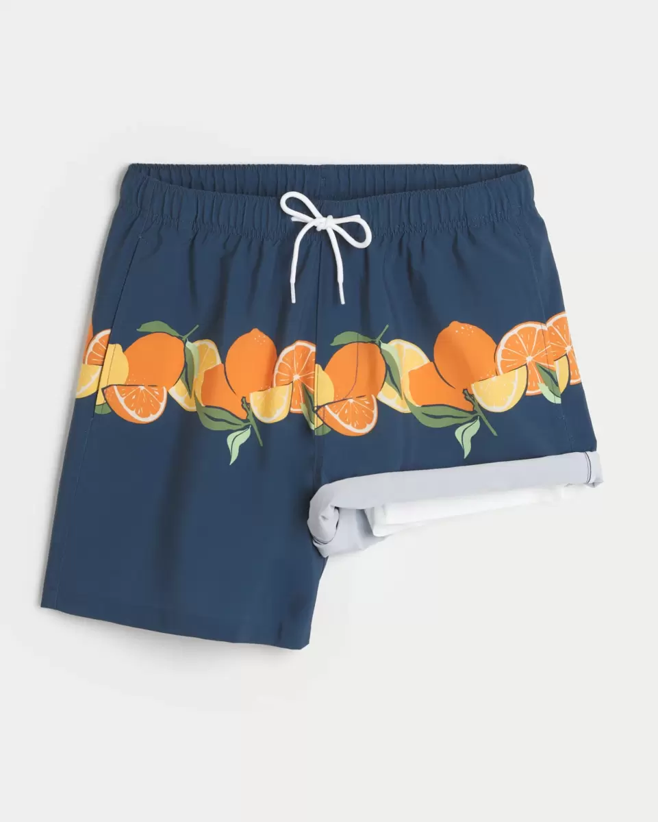 Shorter-length swim trunks that hit mid-thigh. Featuring comfortable 4-way stretch swim fabric and a 6″ inseam. Front pockets, mesh lining. Imported.