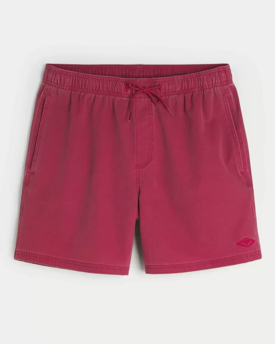 Shorter-length swim trunks that hit mid-thigh. Featuring comfortable 4-way stretch swim fabric and a 6″ inseam. Pockets, embroidered detail. Imported.