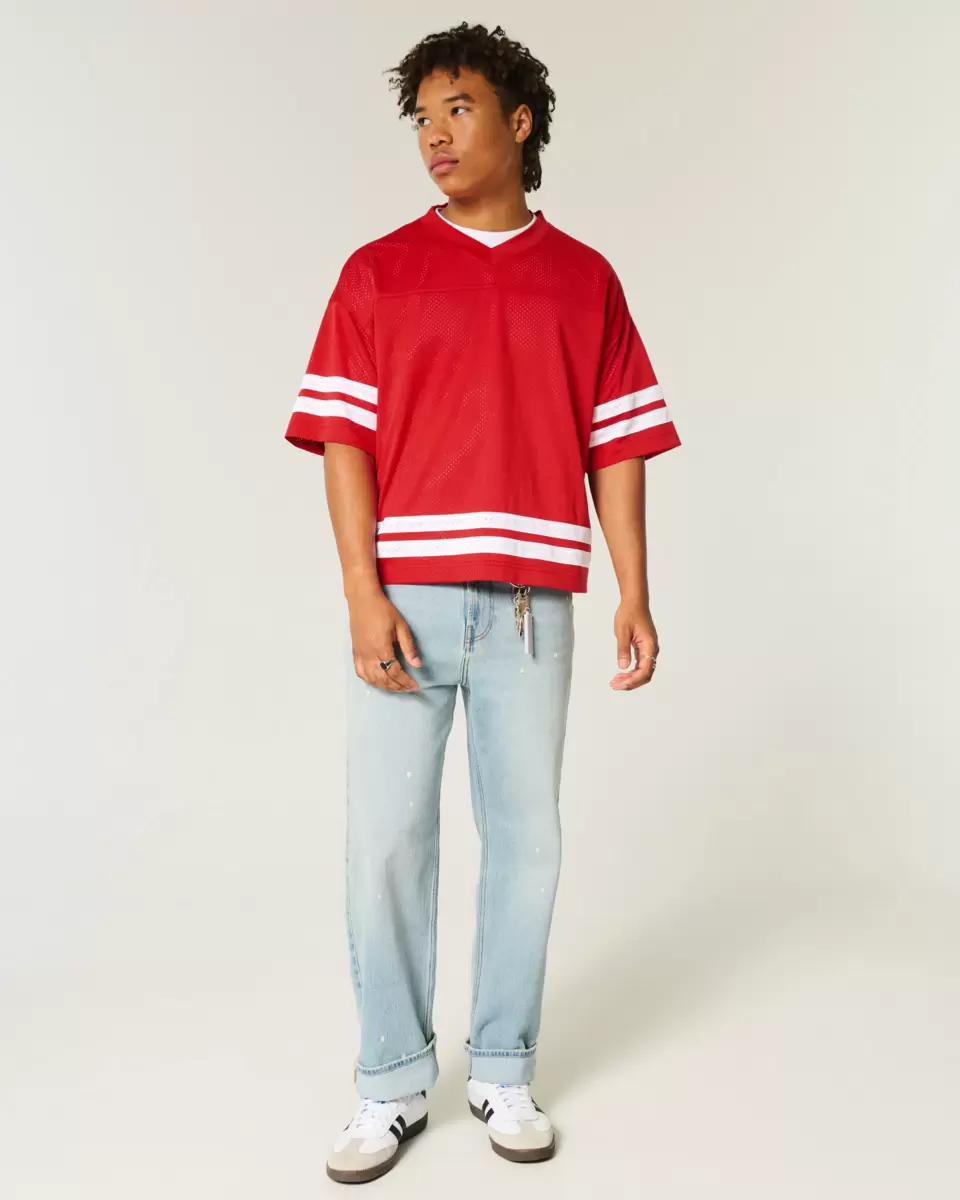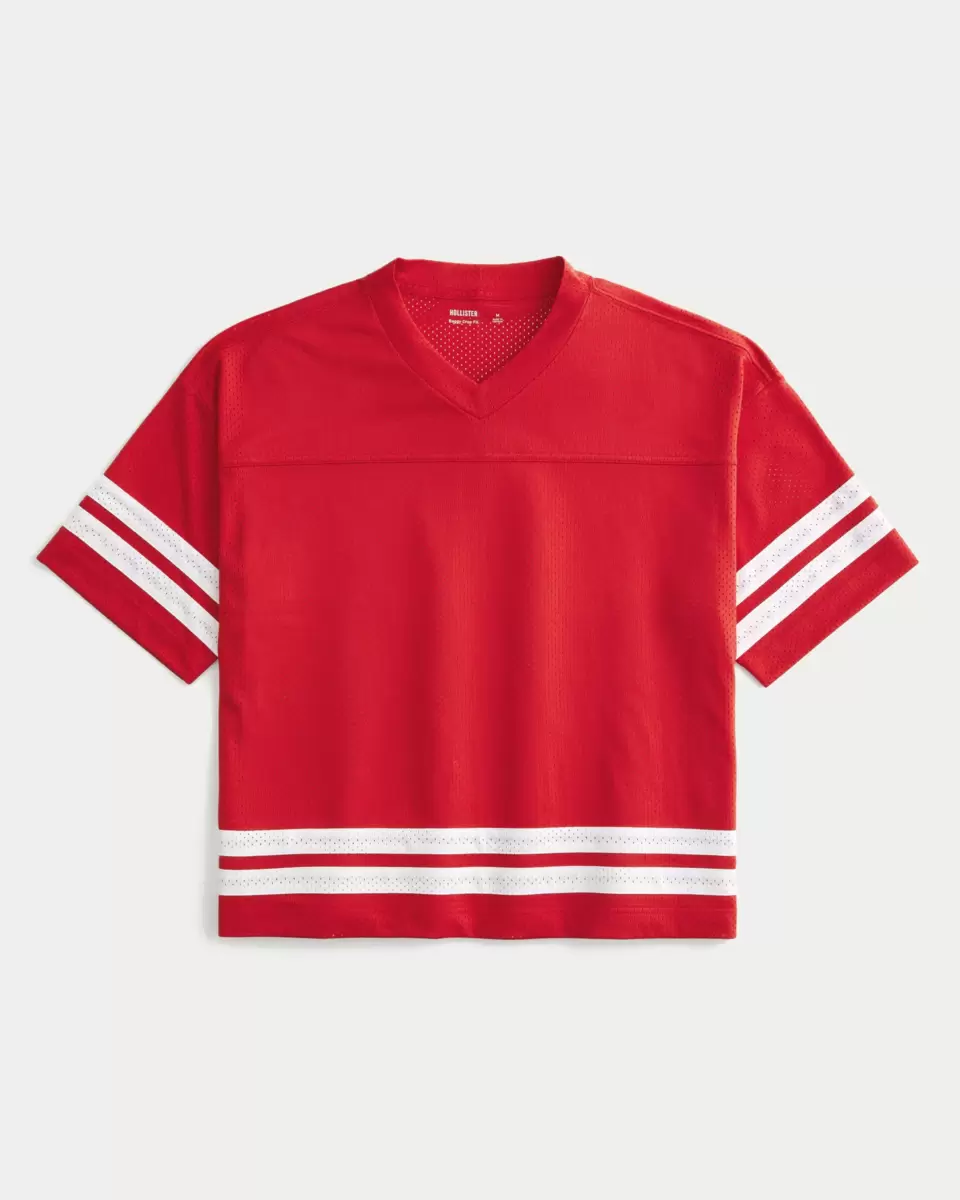 A classic football jersey in mesh fabric with a v-neckline and short sleeves. Baggy Crop Fit. Imported.
