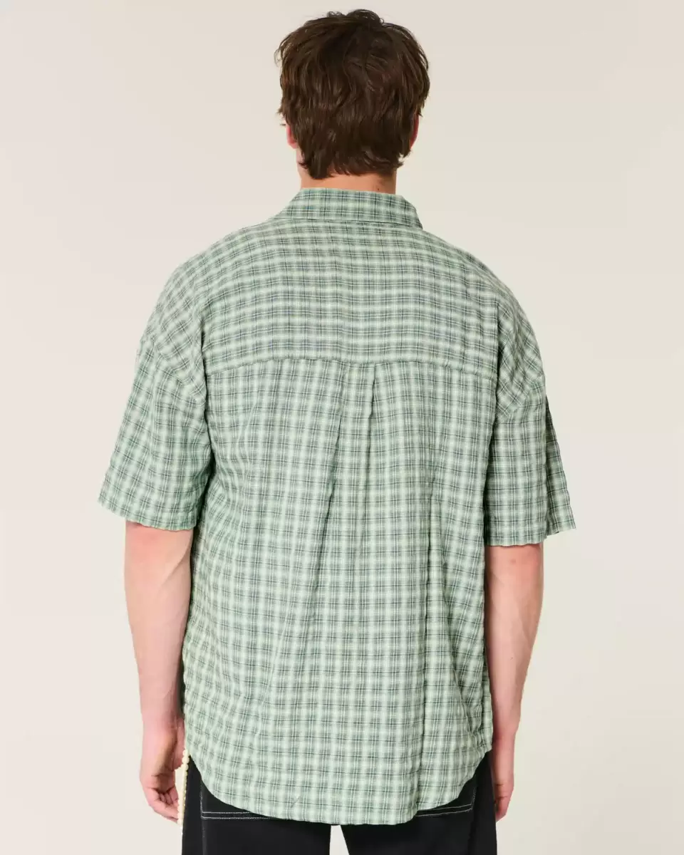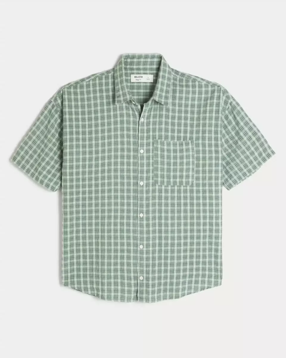 This classic, comfortable short-sleeve shirt features a plaid pattern and left chest pocket. Full button closure, collar. Baggy Fit. Imported.