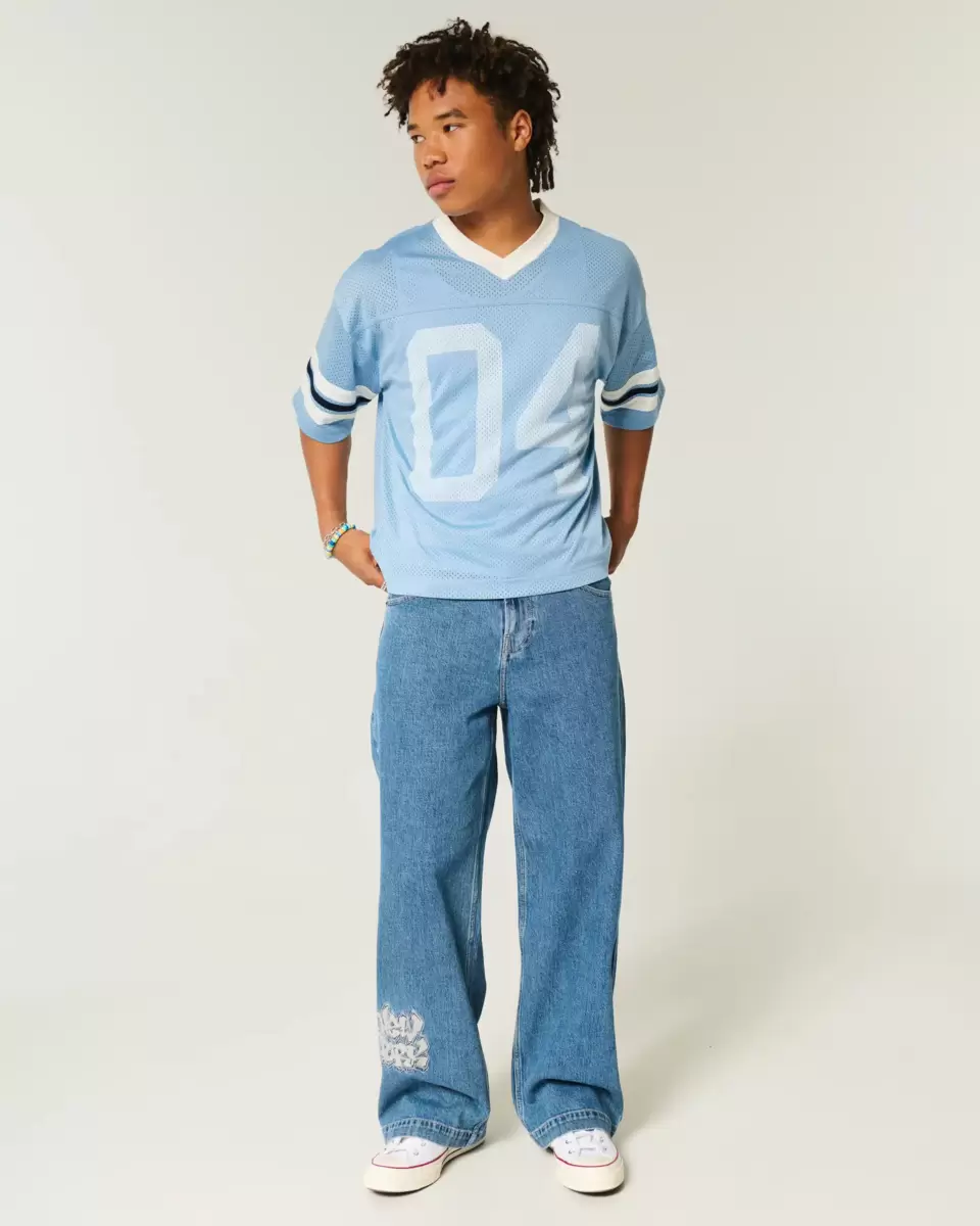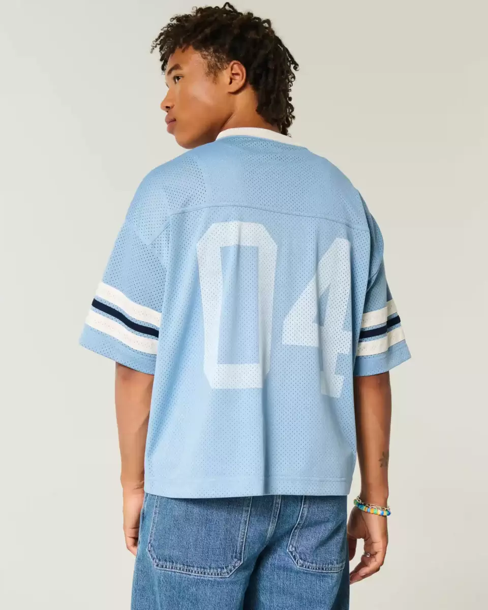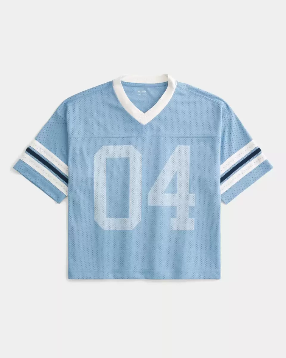 A classic football jersey in mesh fabric, featuring number 04 print graphics at the front and back, a v-neckline and short sleeves. Boxy Crop Fit. Imported.