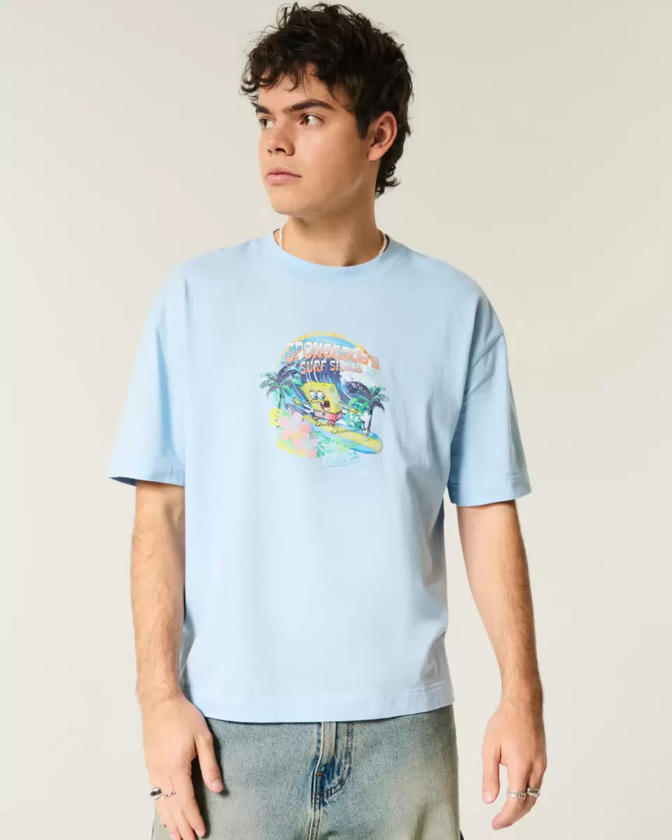 A super soft 100% cotton tee featuring official licensed SpongeBob SquarePants Surf Shack print graphics. Crew neckline, short sleeves. Boxy Crop Fit. Imported.
