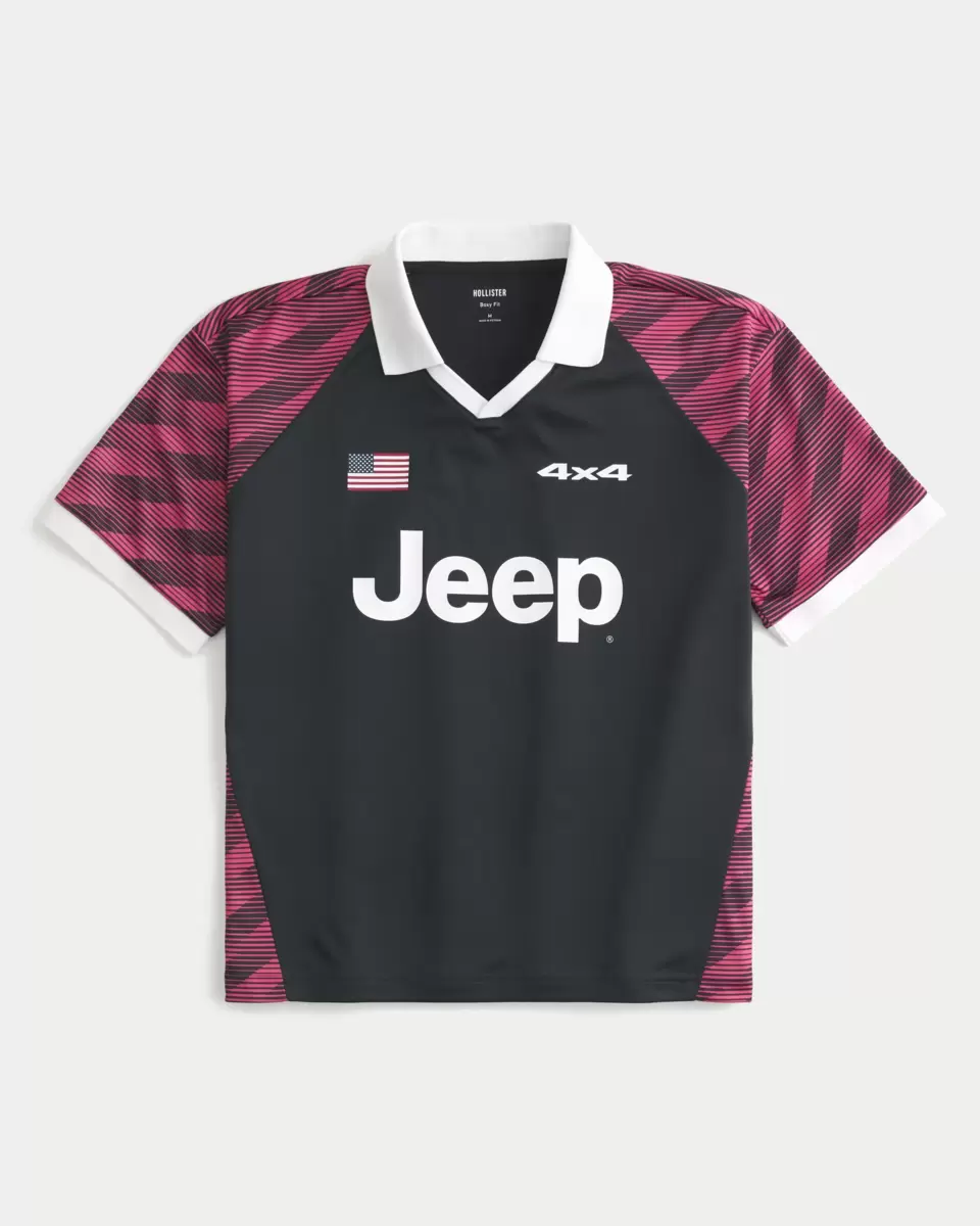 A classic soccer jersey in soft, sporty fabric, featuring official licensed Jeep graphics. Number graphic at back, short sleeves, collar. Boxy Fit.