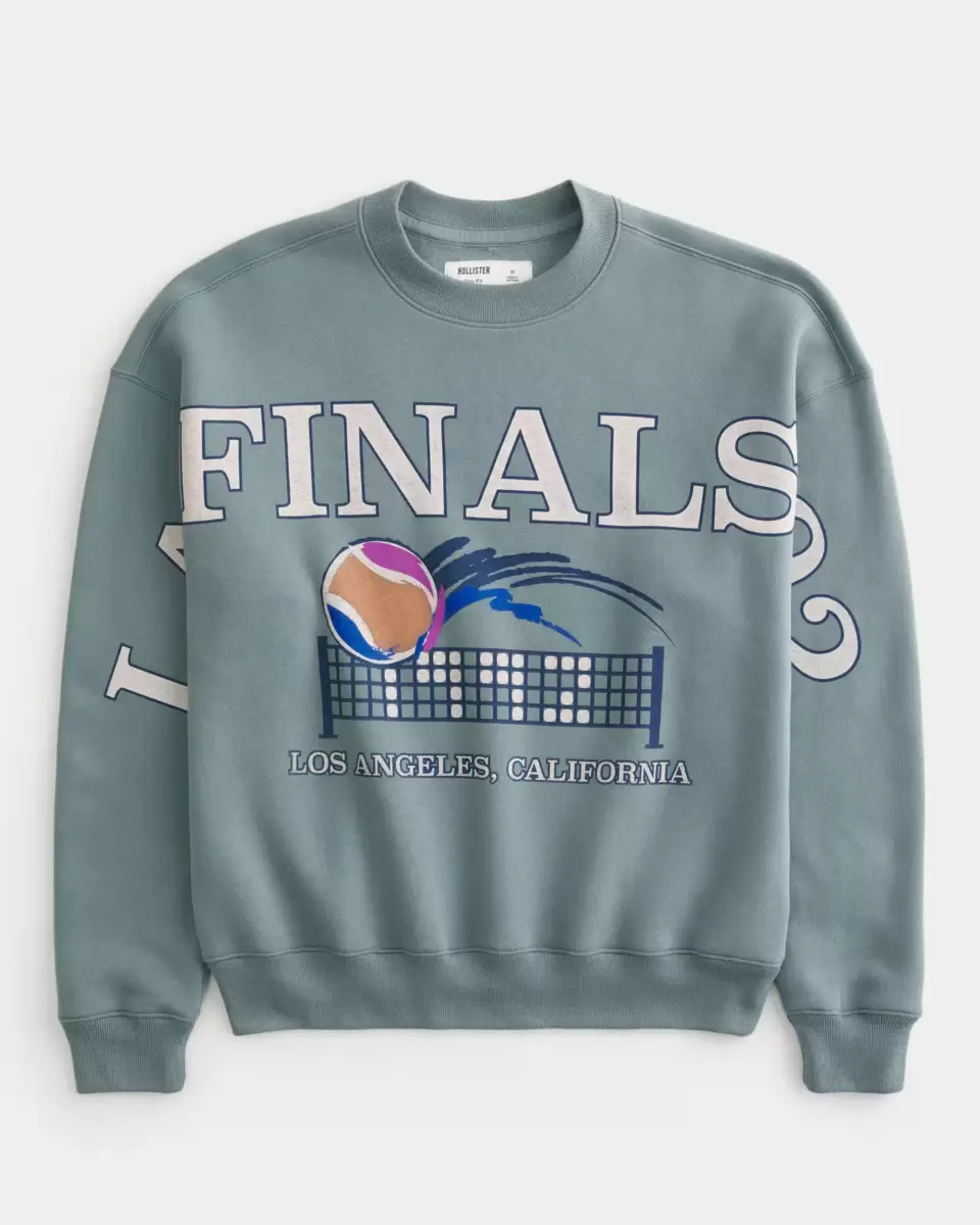 A super soft fleece sweatshirt featuring LA Los Angeles Finals tennis print graphics across the chest and sleeves. Crew neckline, long sleeves. Boxy Fit. Imported.