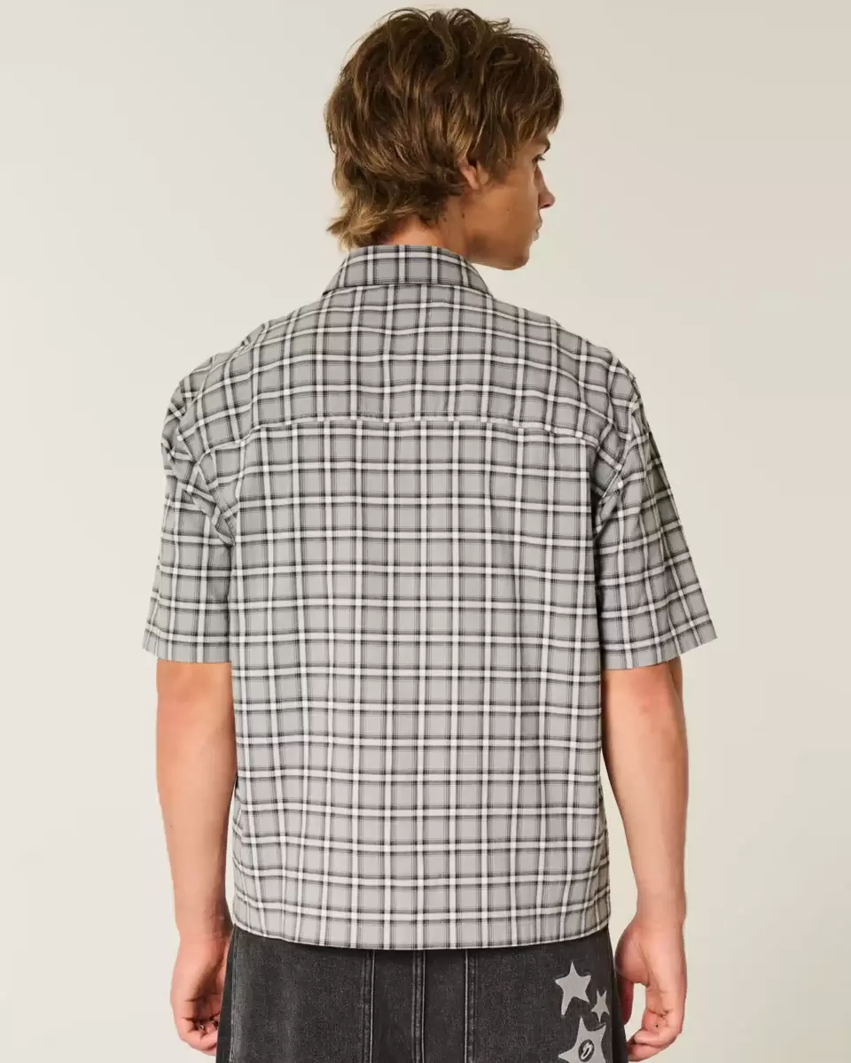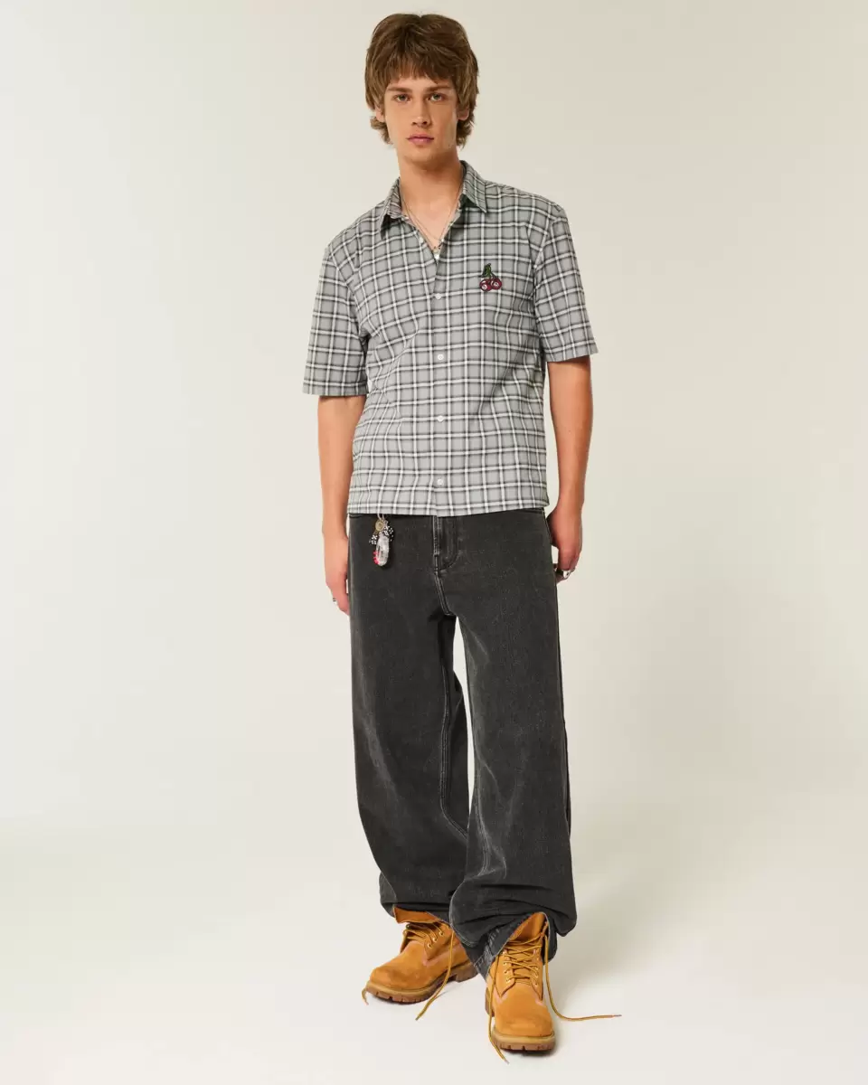 A classic short-sleeve shirt with an embroidered cherry graphic at the left chest. Collar, short sleeves, full button closure. Boxy Fit. Imported.