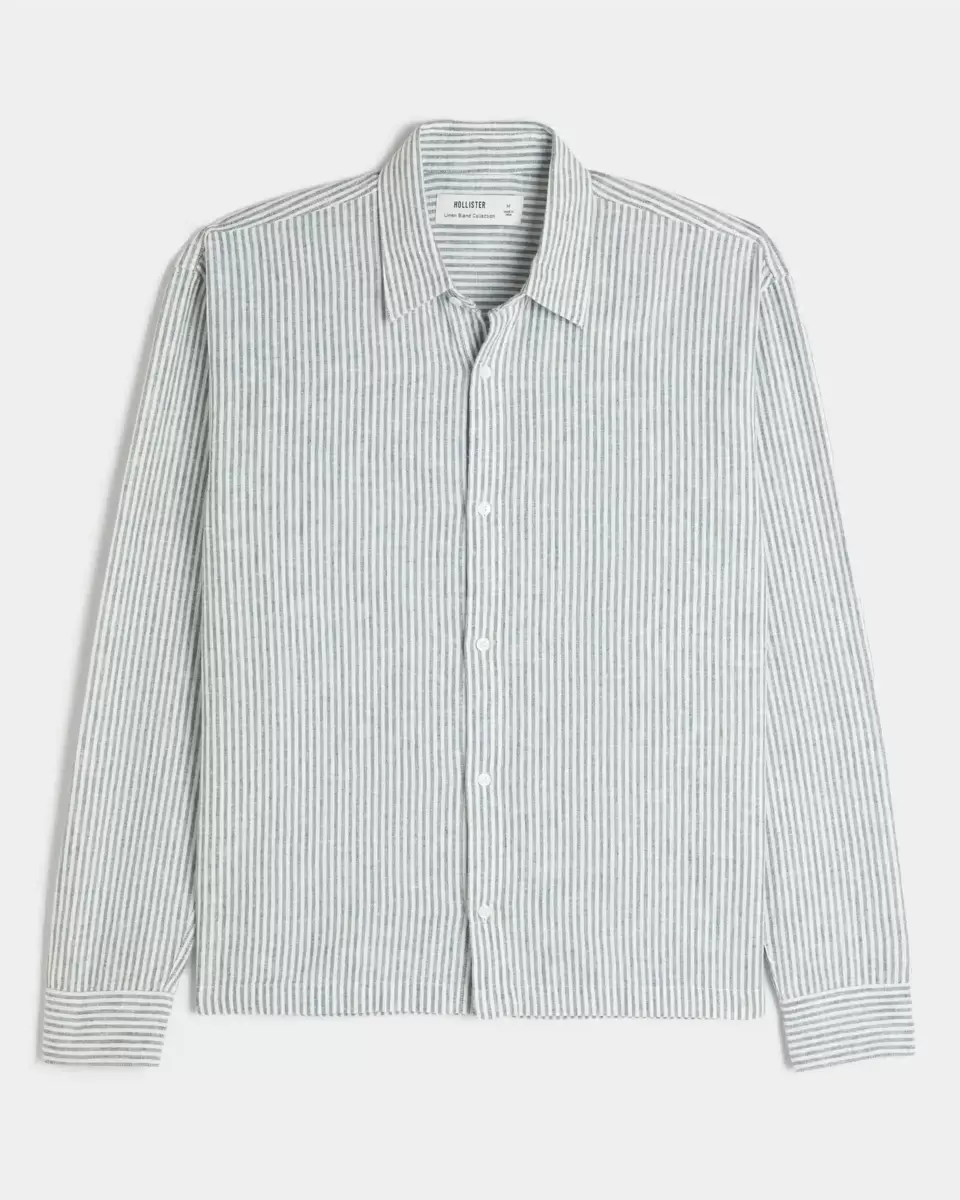 This classic, comfortable shirt is made with a soft linen blend. Full button closure, long sleeves, collar. Relaxed Fit.