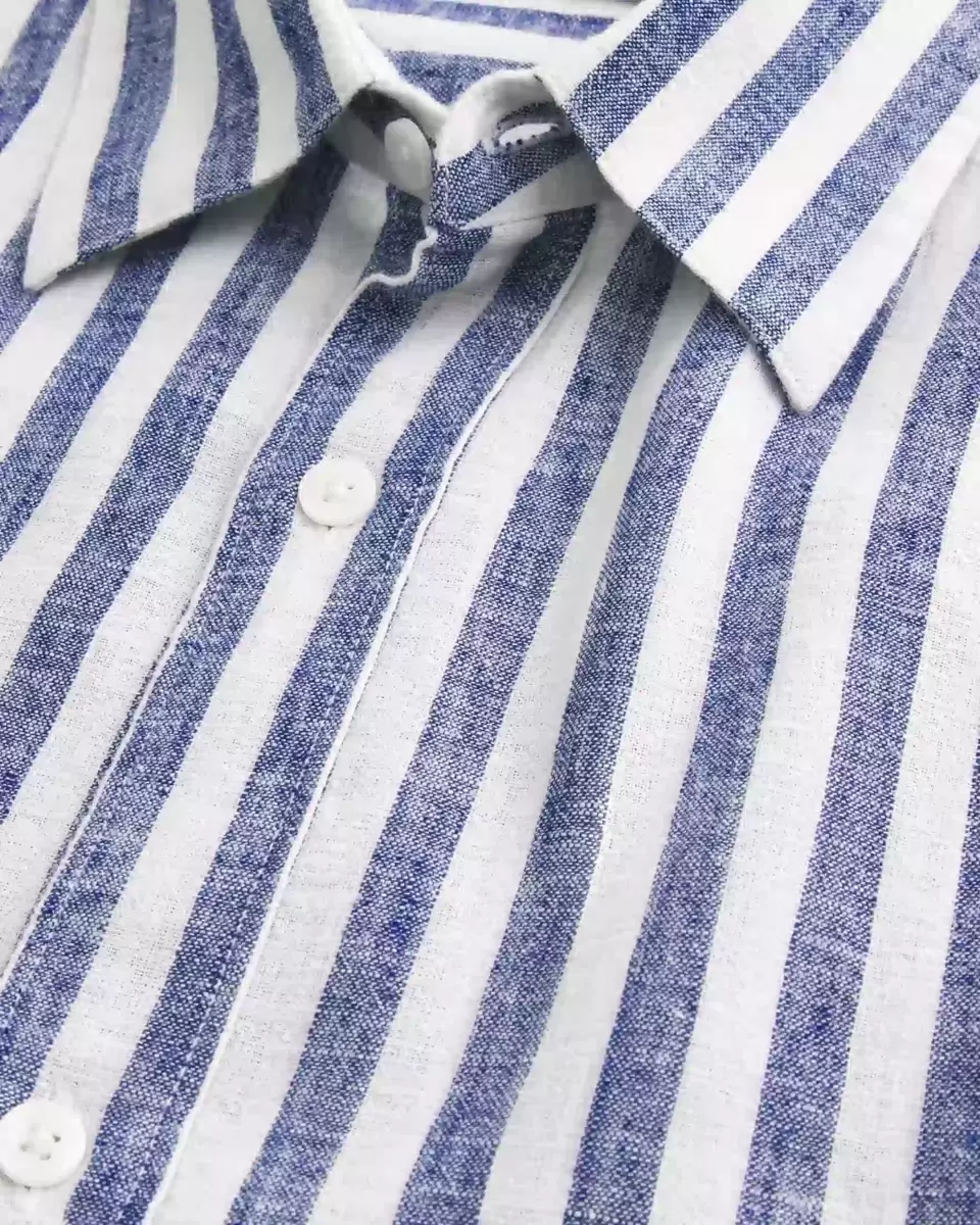 This classic, comfortable shirt is made with a soft linen blend. Full button closure, long sleeves, collar. Relaxed Fit. Imported.