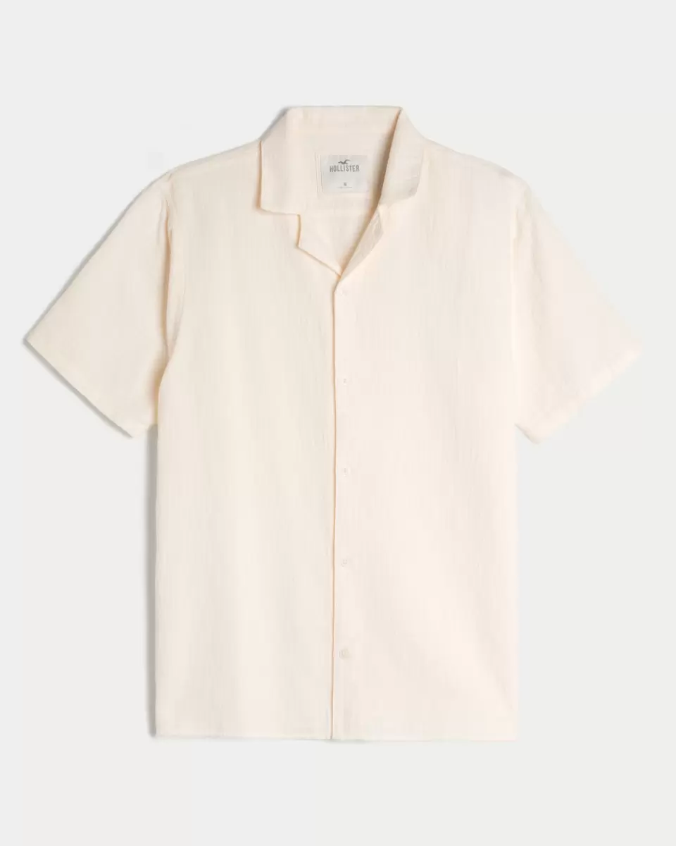 A soft, comfortable shirt in 100% cotton with all-over texture. Short sleeves, full button closure, collar. Relaxed Fit. Imported.