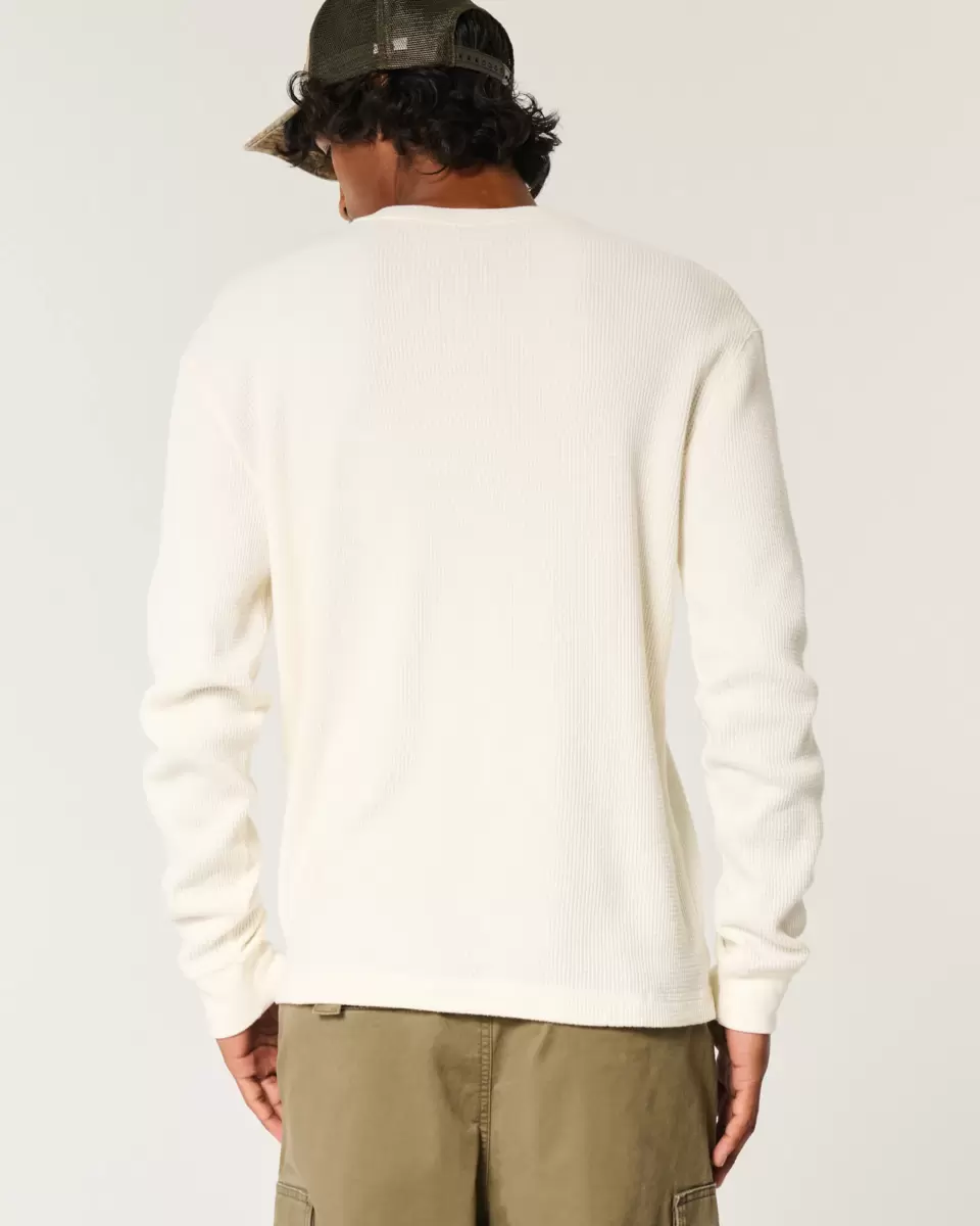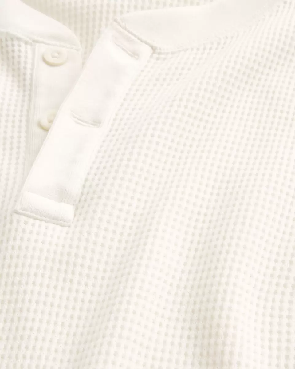 A classic henley in super soft thermal waffle fabric. Crew neckline with button placket, long sleeves. Imported.