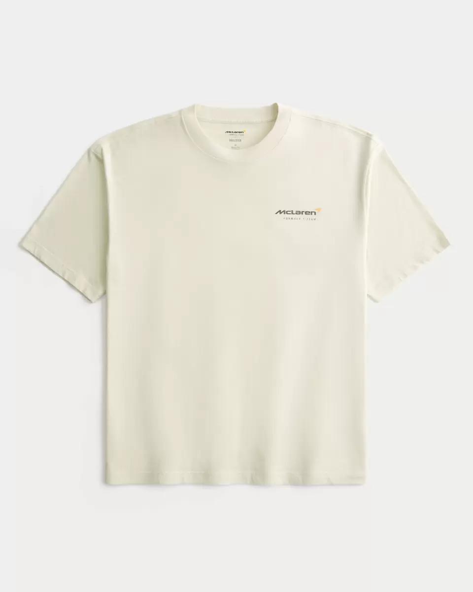 A super soft 100% cotton tee featuring official licensed McLaren Formula 1 Team print graphics at the left chest and Las Vegas graphics at the back. Crew neckline, short sleeves. Boxy Fit. Imported.