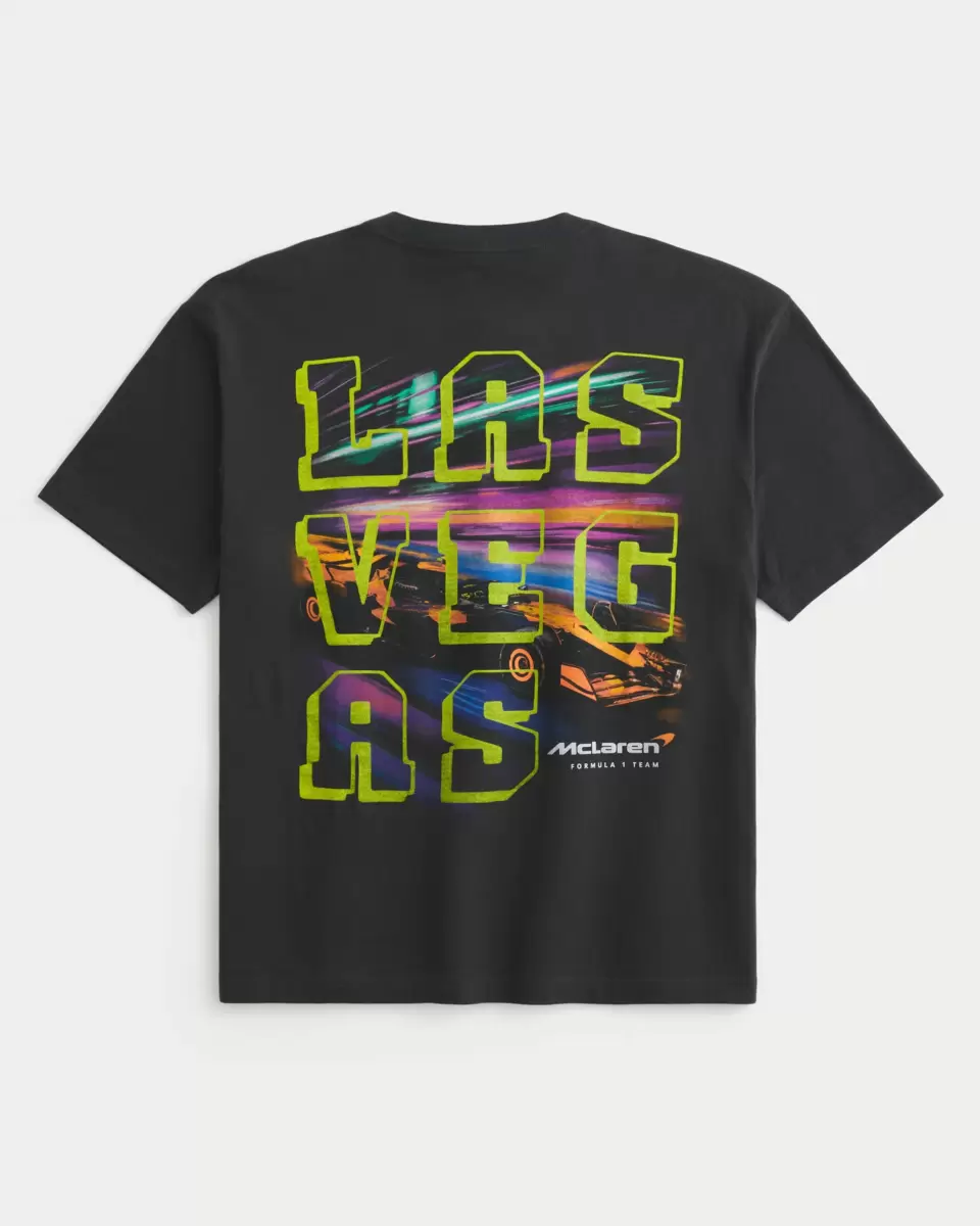 A super soft 100% cotton tee featuring official licensed McLaren Formula 1 Team print graphics at the front and back. Las Vegas print graphics at back. Crew neckline, short sleeves. Boxy Fit. Imported.