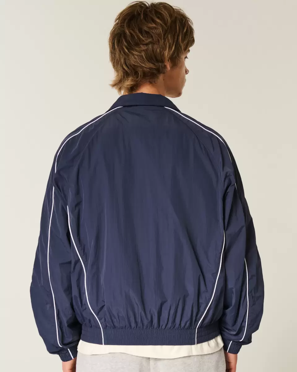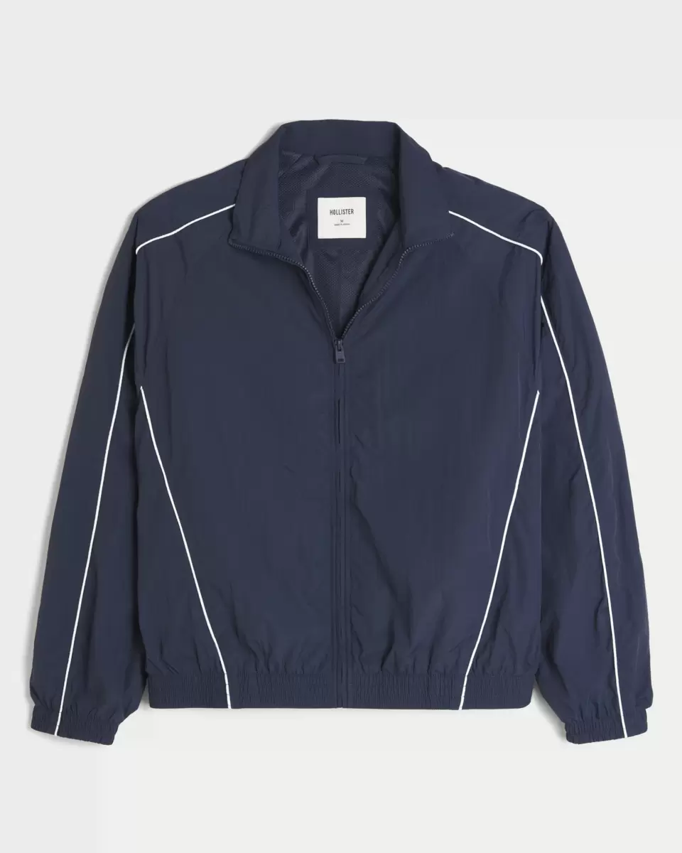 A classic windbreaker jacket with a full zip-up closure. Collar, banded hems. Imported.