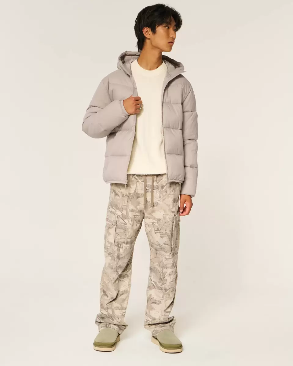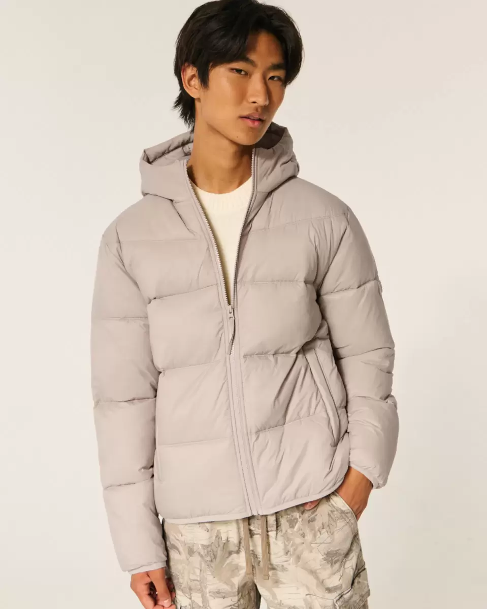 A comfortable, unlined puffer jacket designed with quilted channels. Full zip-up closure, front pockets, logo detail at left sleeve, hood. Imported.