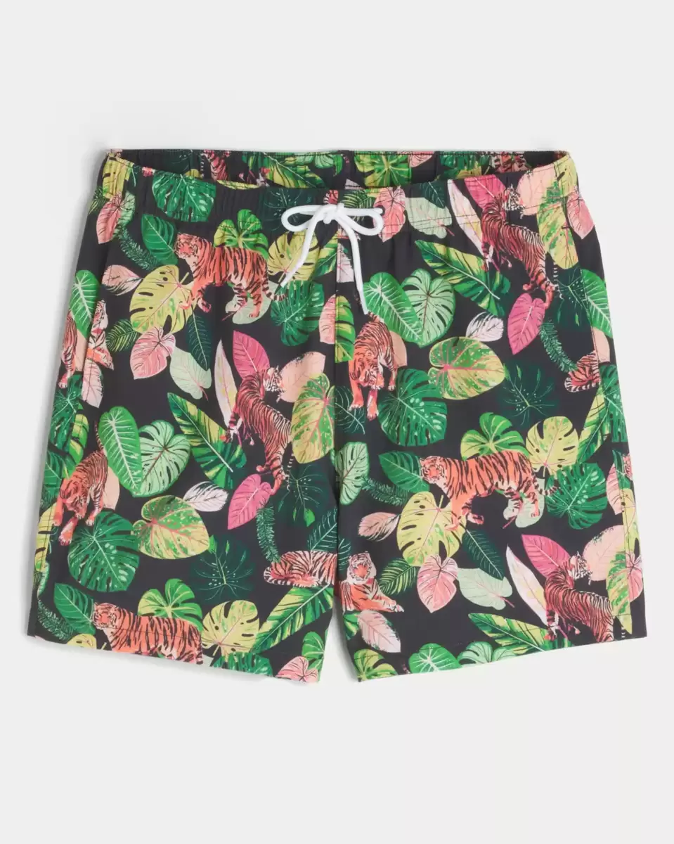 Shorter-length swim trunks that hit mid-thigh. Featuring comfortable 4-way stretch swim fabric and a 5.5″ inseam. Pockets. Imported.