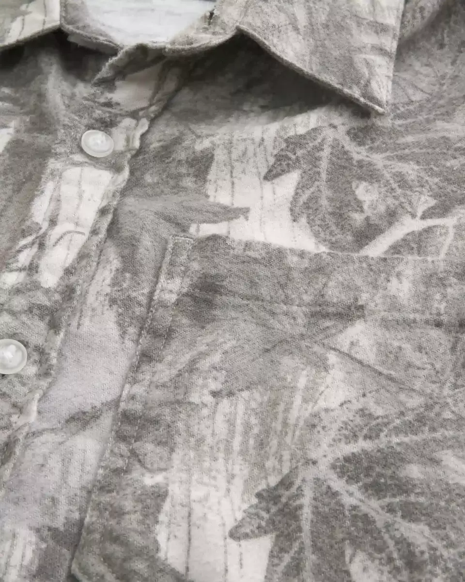 A classic shirt in soft cotton flannel fabric, featuring an all-over camo pattern. Full button closure, long sleeves, left chest pocket, collar. Boxy Fit.