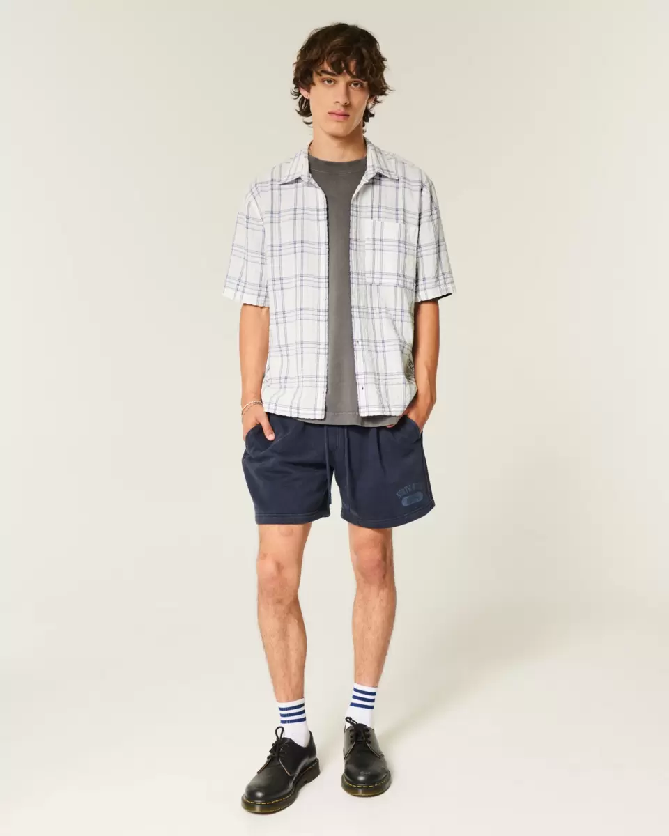 This classic short-sleeve shirt has a full button closure and left chest pocket. Short sleeves, collar. Boxy Fit. Imported.